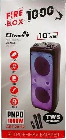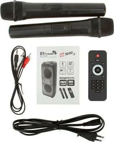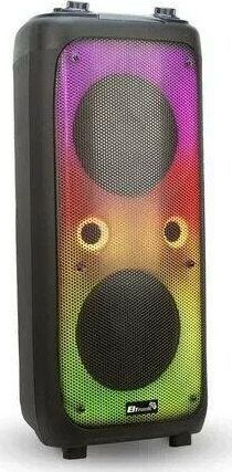 "Режимы воспроизведения: - Bluetooth - FM - Внешний накопитель - Aux Мощность: - RMS 100 Ватт - PMPO 1000 Ватт Питание: - 220V - Встроенный аккумулятор 12В 7А (до 5 часов работы) Разъемы: - USB - SD - AUX - Jack 6.3 мм (микрофон-гитара) 2 шт. Комплектация: - Колонка - Кабель AUX - 2 Беспроводных микрофона - Пульт ДУ - Инструкция Размеры: Ширина - 40 см Высота - 86 см Глубина - 34 см Дополнительно: LED посветка Регулировка громкости микрофона Дисплей Приоритет микрофона Регулировка эхо микрофона Удобная ручка для переноски Колесики 5 полосный эквалайзер"