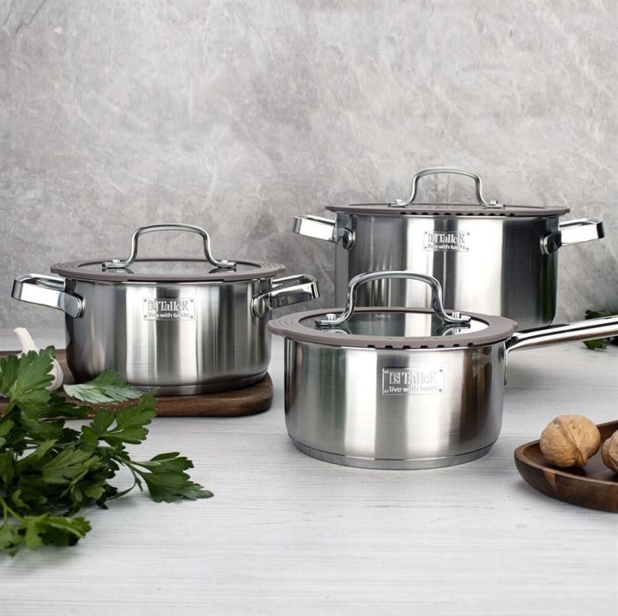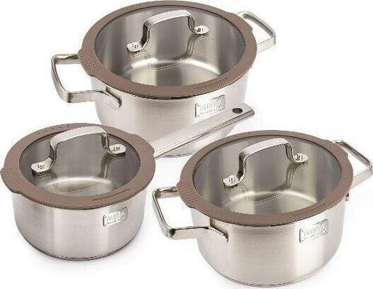 Набор посуды Experience, 6 предметов. Состав набора : кастрюля 3,9 л с крышкой, кастрюля 2,1 л с крышкой, ковш 1,5 л с крышкой Материал: нержавеющая сталь 18/10 Комбинированная крышка из закаленного стекла с силиконовым ободом оригинальной конструкции,