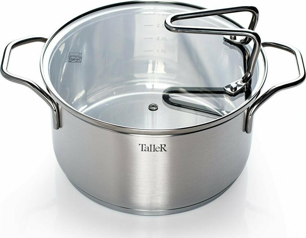 Кастрюля "Инесс" Объем 3 л. Материал: нержавеющая сталь 18/10 Крышка из закаленного стекла со специальным отверстием для выхода пара Удобные отметки литража на внутренней поверхности посуды Капсулированное дно с алюминиевой вставкой обеспечивает идеальное