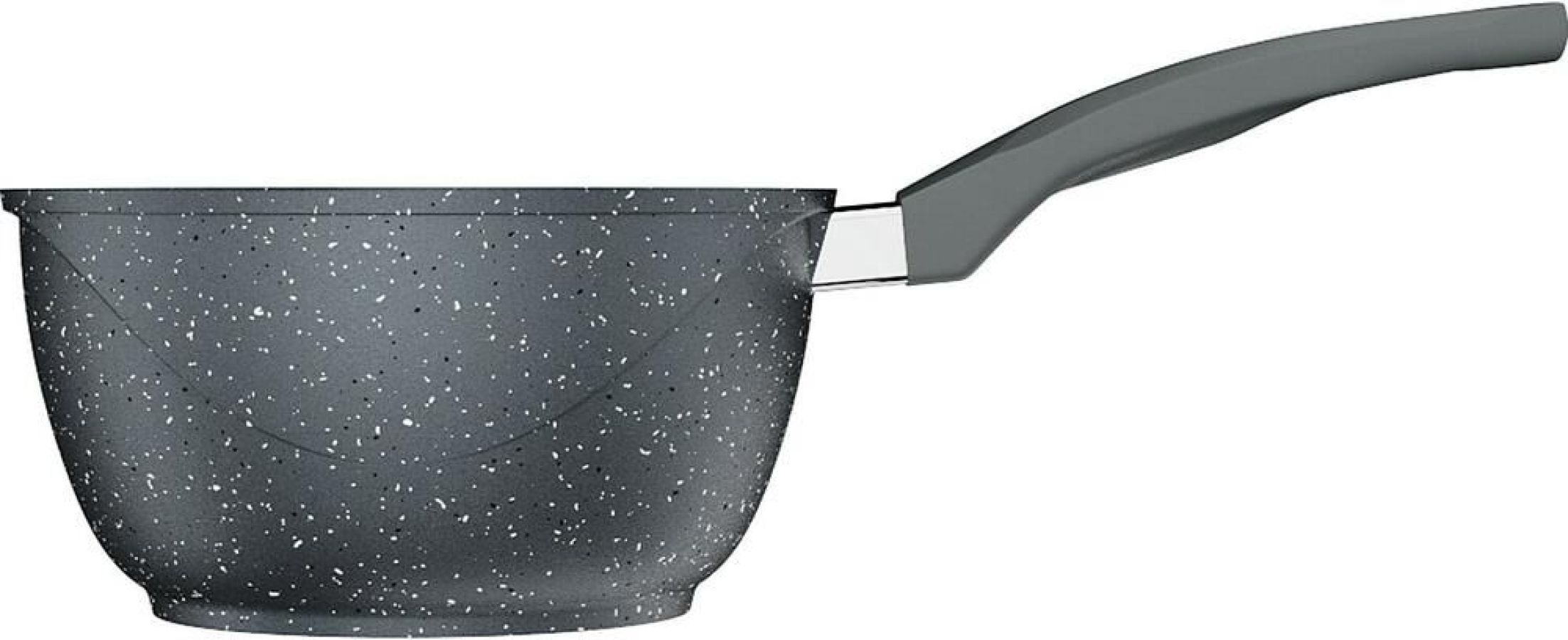 Ковш 1.2л. с несъемной ручкой из бекелита и стеклянной крышкой. Антипригарное покрытие Greblon на водной основе без PFOA. Серия "Гранит". Подходит для всех типов плит, кроме индукционных. Можно использовать в посудомоечной машине. Ресурс более 12 000 циклов, толщина покрытия до 55 мкр. Толщина дна 5,5-6мм., толщина стенок 3,6-4мм. Покрытие Greblon позволяет готовить с минимальным количеством масла, сохраняя вкусовые и полезные свойства продуктов. Литой толстостенный корпус не подвержен деформации, а утолщенное дно равномерно распределяет тепло по всей поверхности.