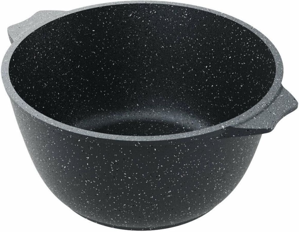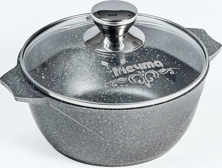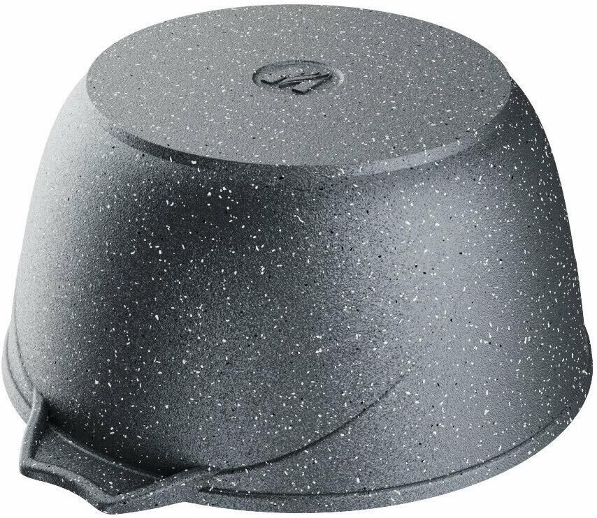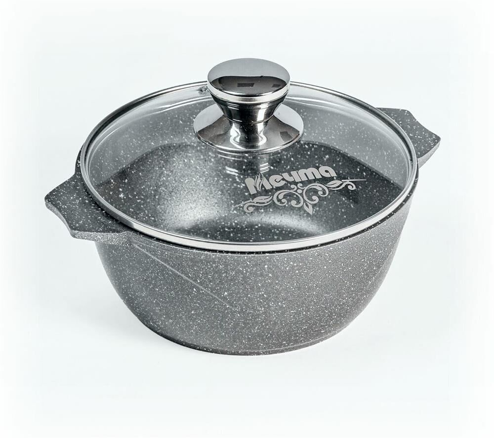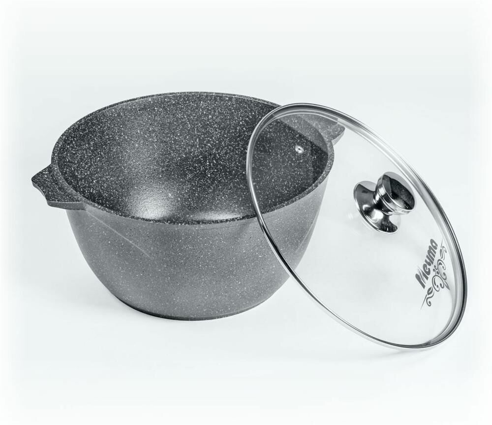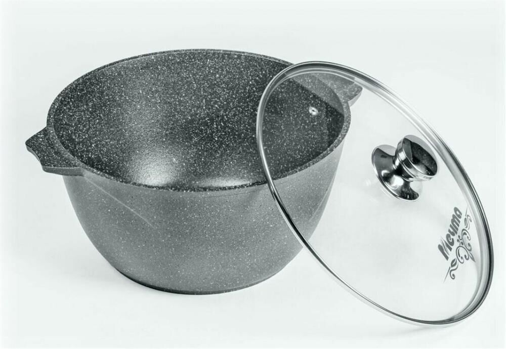 Кастрюля 5л. со стеклянной крышкой. Антипригарное покрытие Greblon на водной основе без PFOA. Серия "Гранит". Подходит для всех типов плит, кроме индукционных. Можно использовать в посудомоечной машине. Ресурс более 12 000 циклов, толщина покрытия до 55 мкр. Толщина дна 5,5-6мм., толщина стенок 3,6-4мм. Покрытие Greblon позволяет готовить с минимальным количеством масла, сохраняя вкусовые и полезные свойства продуктов. Литой толстостенный корпус не подвержен деформации, а утолщенное дно равномерно распределяет тепло по всей поверхности.