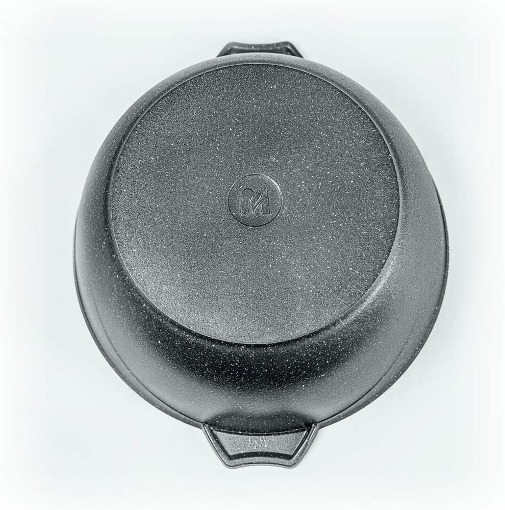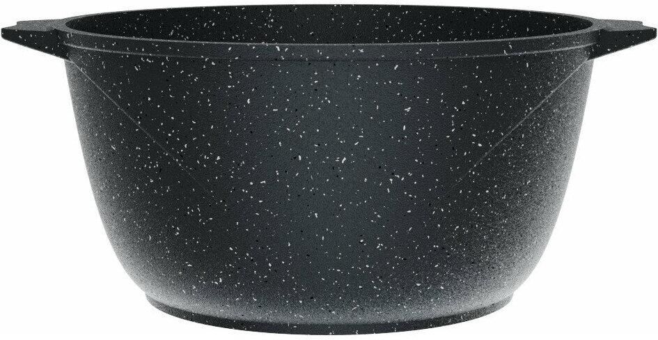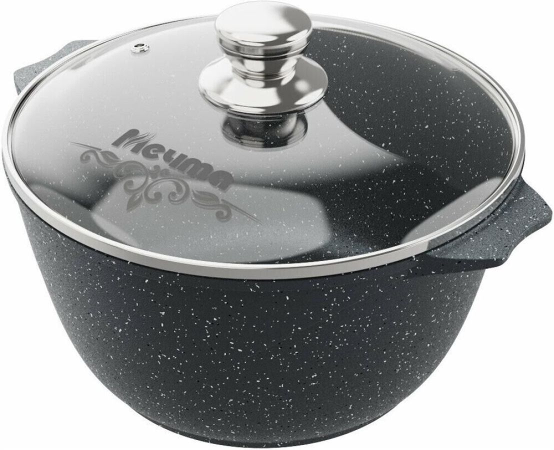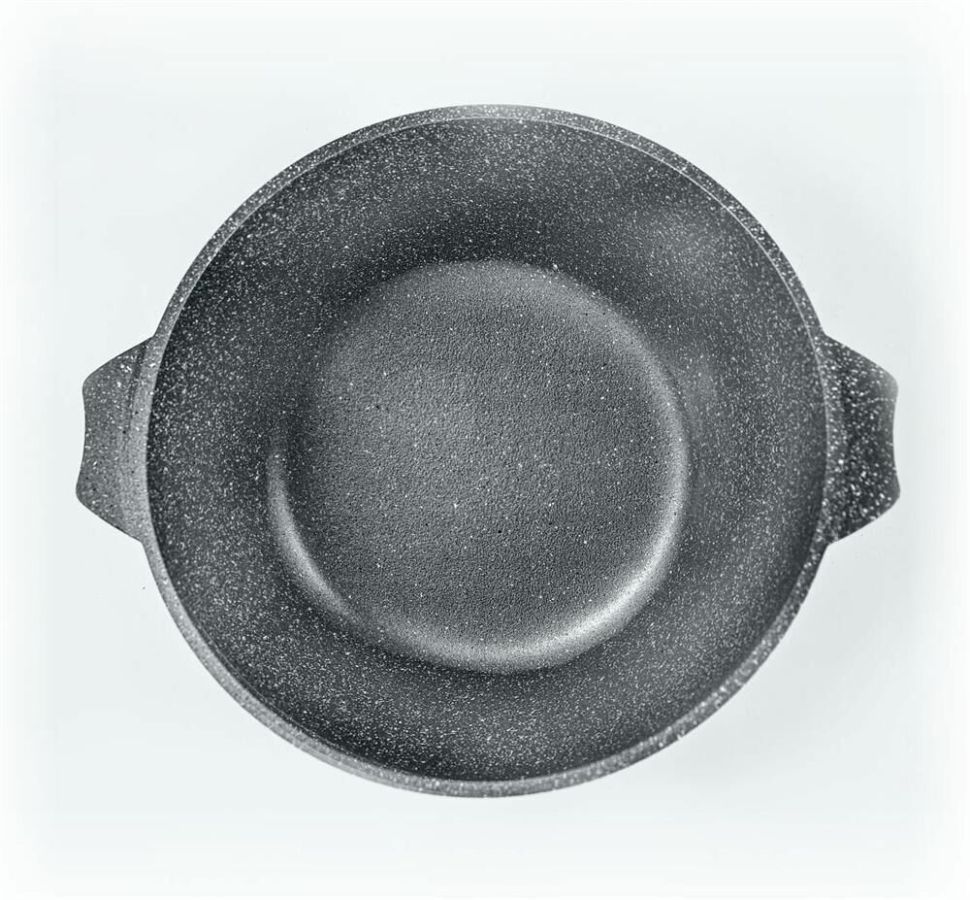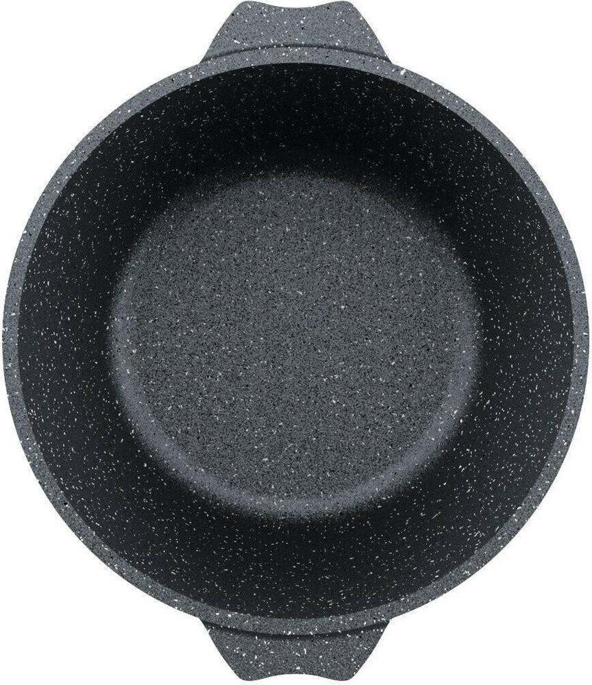 Кастрюля 5л. со стеклянной крышкой. Антипригарное покрытие Greblon на водной основе без PFOA. Серия "Гранит". Подходит для всех типов плит, кроме индукционных. Можно использовать в посудомоечной машине. Ресурс более 12 000 циклов, толщина покрытия до 55 мкр. Толщина дна 5,5-6мм., толщина стенок 3,6-4мм. Покрытие Greblon позволяет готовить с минимальным количеством масла, сохраняя вкусовые и полезные свойства продуктов. Литой толстостенный корпус не подвержен деформации, а утолщенное дно равномерно распределяет тепло по всей поверхности.