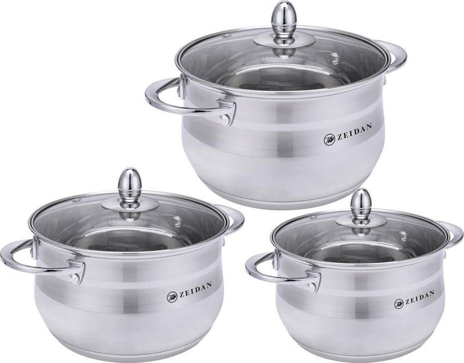 Набор посуды ZEIDAN Z-50659 6 предметов, Набор кастрюль, 6 предм. (3 КАСТРЮЛИ С КРЫШКАМИ: 4.0 л (Ø20 см ), 3.0 л (Ø18 см ), 2.1 л (Ø16 см ), нержавеющая сталь, 5-ТИ СТЕПОВОЕ КАПСУЛИРОВАННОЕ ИНДУКЦИОННОЕ ДНО, комбинированная полировка снаружи, матовая по