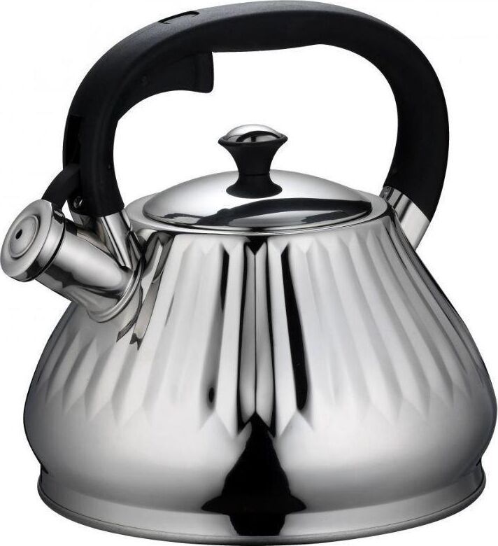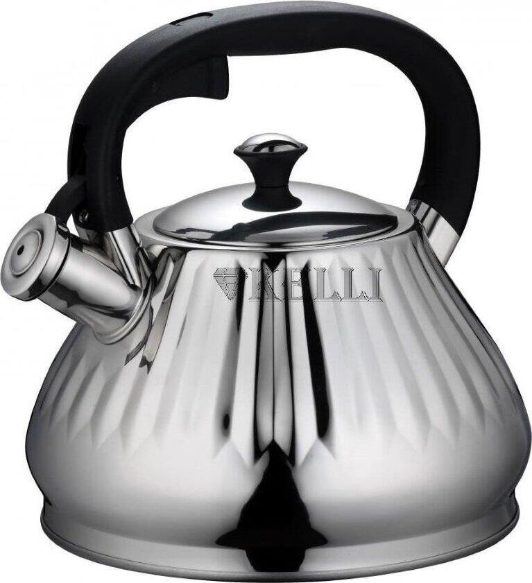 Металлический чайник со свистком Объем: 3,5 л Высококачественная нержавеющая сталь, теплоемкое капсульное дно, Эргономичная ручка не нагревается, свистит при закипании воды
