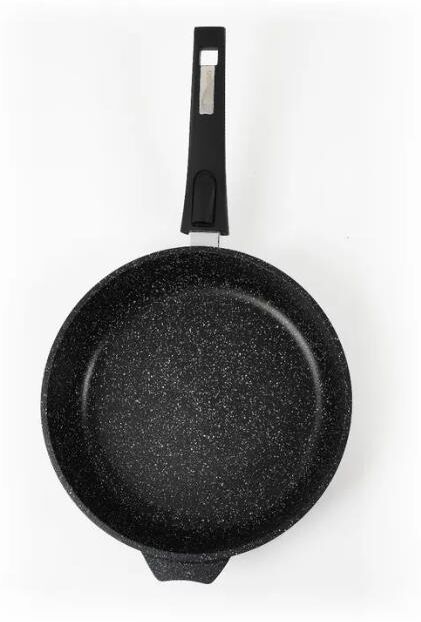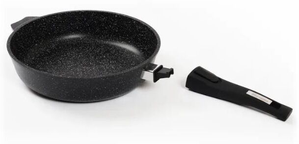 Сковорода 18 см с антипригарным покрынием и съемной ручкой серии "Гранит black" Подходит для всех типов плит, кроме индукционных. Можно использовать в посудомоечной машине. Можно использовать в духовке отдельно без ручки.