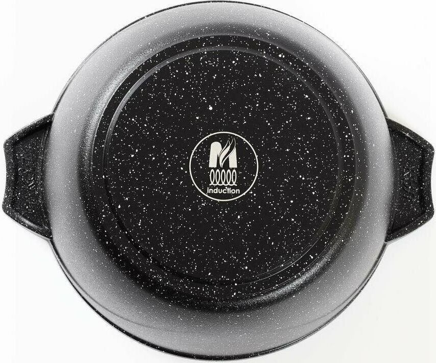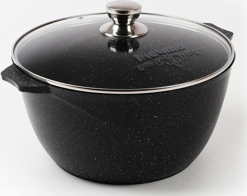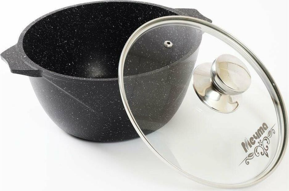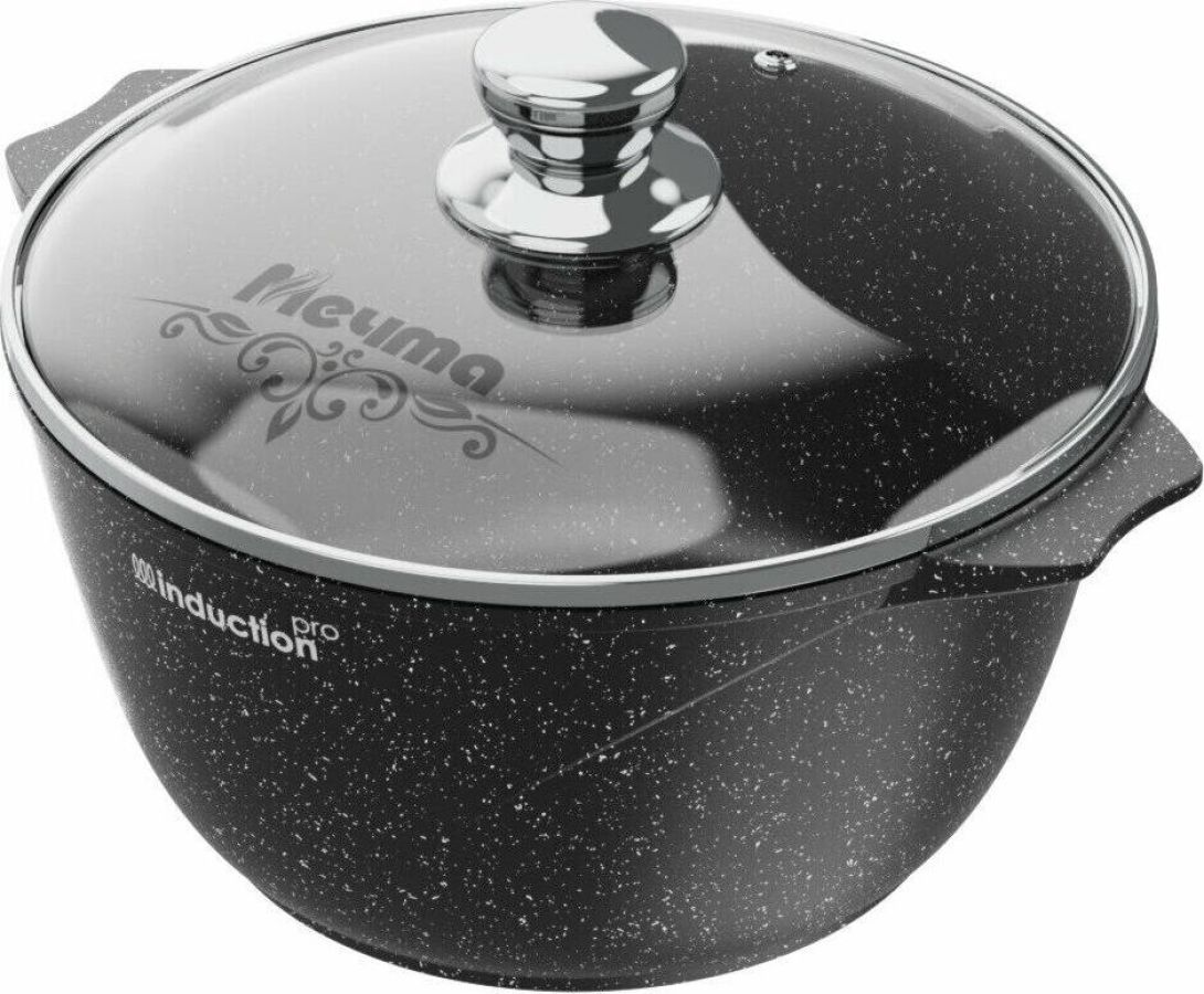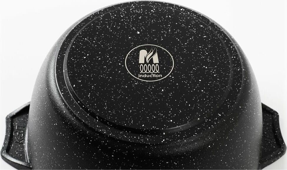 Кастрюля индукционная 3л. со стеклянной крышкой. Сверхпрочное антипригарное покрытие Greblon на водной основе без PFOA. Толщина покрытия до 55 микрон. Ресурс более 12 000 циклов. Серия "Гранит black Induction Pro". Толщина дна 7мм., толщина стенок 3,6-4мм.