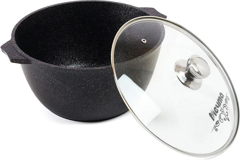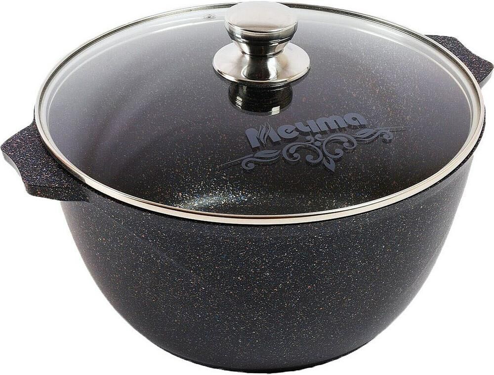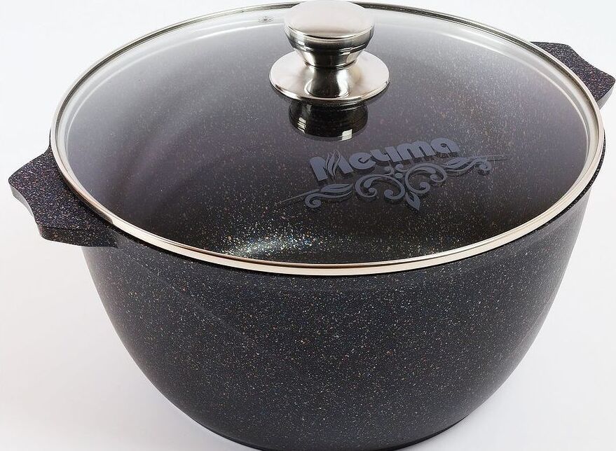 Кастрюля 6л со стеклянной крышкой. Антипригарное покрытие Greblon на водной основе без PFOA серии "Гранит star". Подходит для всех типов плит, кроме индукционных. Можно использовать в посудомоечной машине. Ресурс более 12 000 циклов, толщина покрытия до 55 мкр. Толщина дна 5,5-6мм., толщина стенок 3,6-4мм. Покрытие Greblon позволяет готовить с минимальным количеством масла, сохраняя вкусовые и полезные свойства продуктов. Литой толстостенный корпус не подвержен деформации, а утолщенное дно равномерно распределяет тепло по всей поверхности.