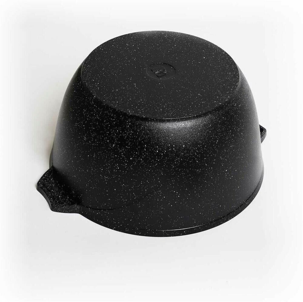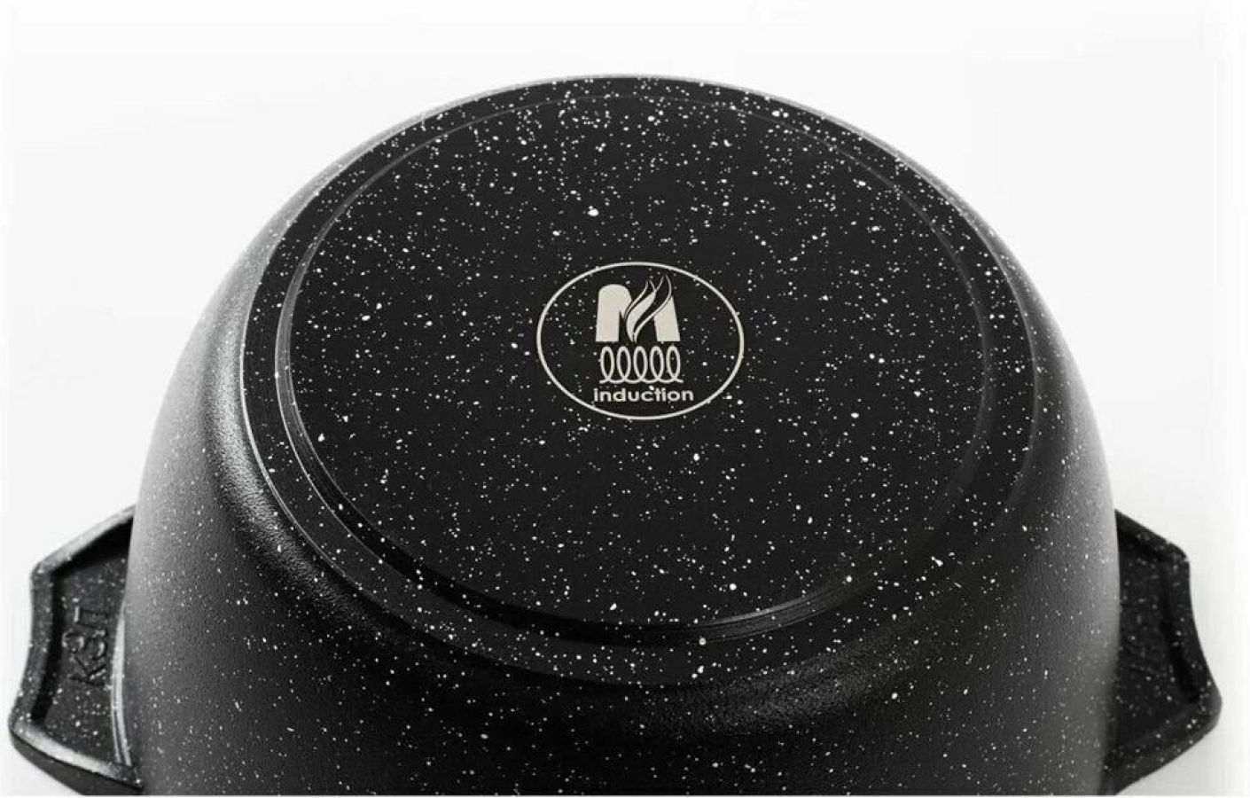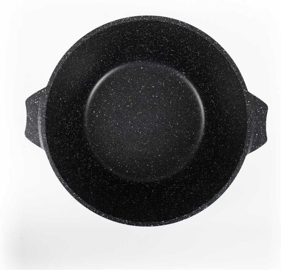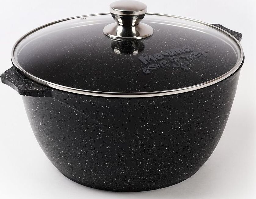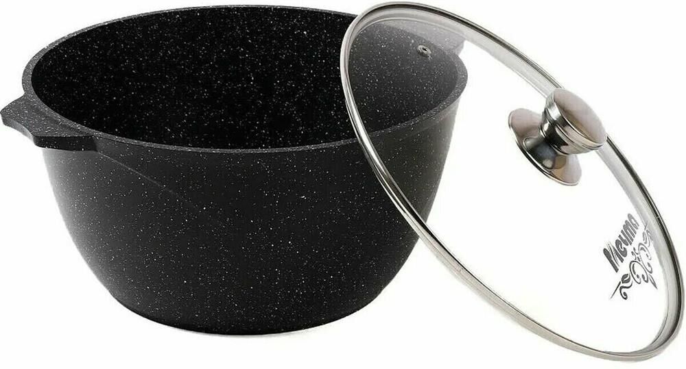 Кастрюля 6л. со стеклянной крышкой. Антипригарное покрытие Greblon на водной основе без PFOA. Серия "Гранит black". Подходит для всех типов плит, кроме индукционных. Можно использовать в посудомоечной машине. Ресурс более 12 000 циклов, толщина покрытия до 55 мкр. Толщина дна 5,5-6мм., толщина стенок 3,6-4мм. Покрытие Greblon позволяет готовить с минимальным количеством масла, сохраняя вкусовые и полезные свойства продуктов. Литой толстостенный корпус не подвержен деформации, а утолщенное дно равномерно распределяет тепло по всей поверхности.
