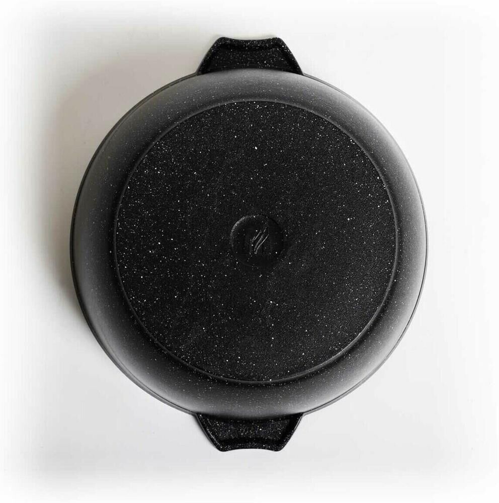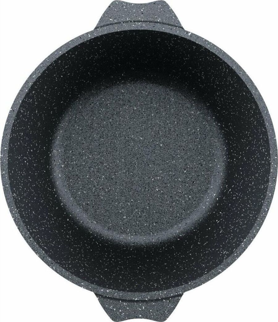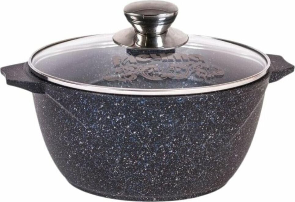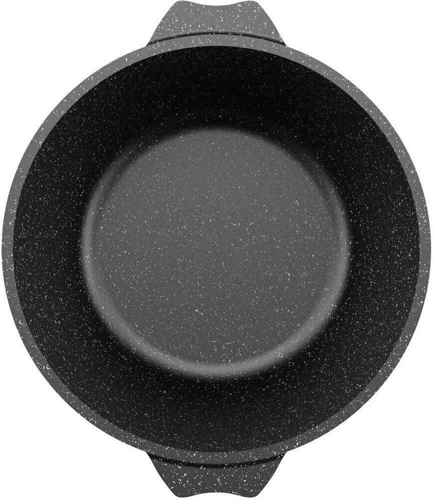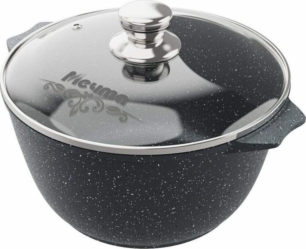 Кастрюля 6л. со стеклянной крышкой. Антипригарное покрытие Greblon на водной основе без PFOA. Серия "Гранит black". Подходит для всех типов плит, кроме индукционных. Можно использовать в посудомоечной машине. Ресурс более 12 000 циклов, толщина покрытия до 55 мкр. Толщина дна 5,5-6мм., толщина стенок 3,6-4мм. Покрытие Greblon позволяет готовить с минимальным количеством масла, сохраняя вкусовые и полезные свойства продуктов. Литой толстостенный корпус не подвержен деформации, а утолщенное дно равномерно распределяет тепло по всей поверхности.