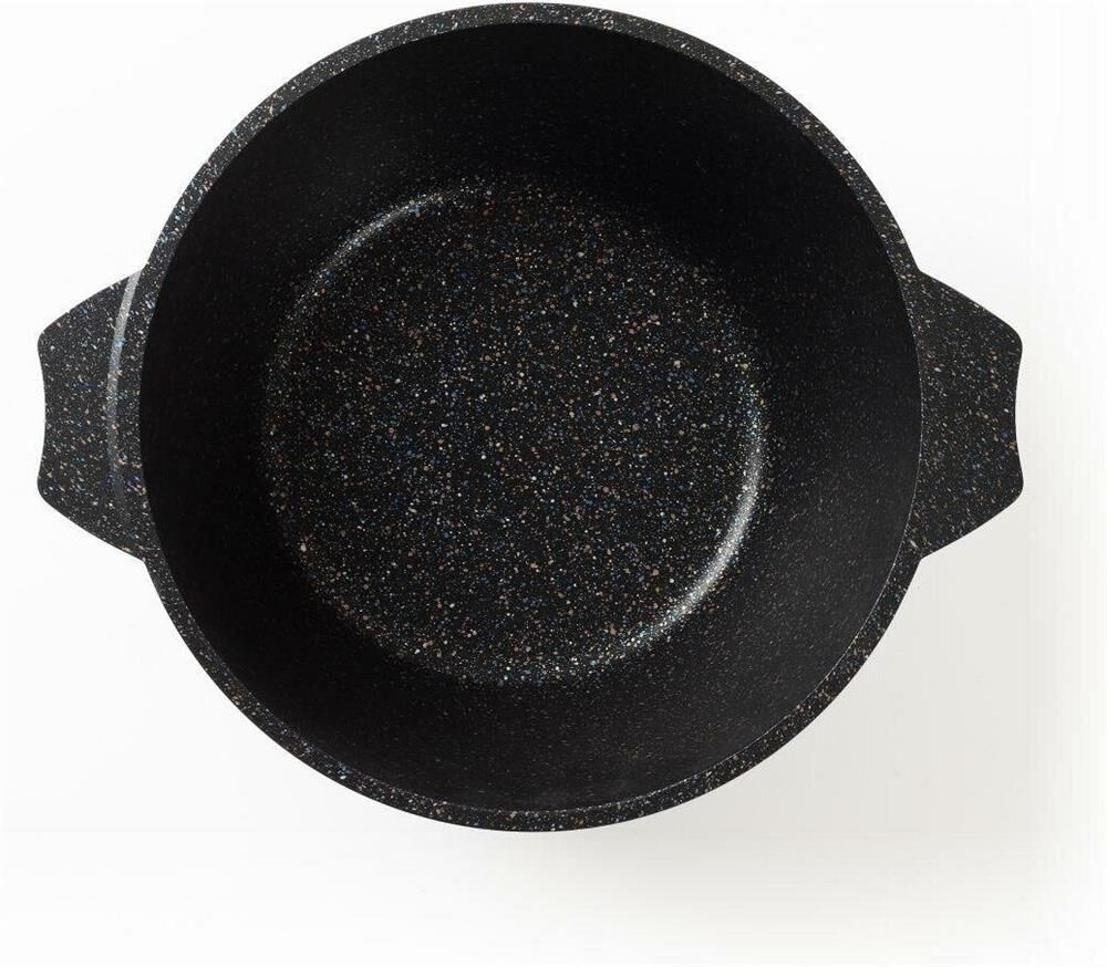 Кастрюля 5л со стеклянной крышкой. Антипригарное покрытие Greblon на водной основе без PFOA серии "Гранит star". Подходит для всех типов плит, кроме индукционных. Можно использовать в посудомоечной машине. Ресурс более 12 000 циклов, толщина покрытия до 55 мкр. Толщина дна 5,5-6мм., толщина стенок 3,6-4мм. Покрытие Greblon позволяет готовить с минимальным количеством масла, сохраняя вкусовые и полезные свойства продуктов. Литой толстостенный корпус не подвержен деформации, а утолщенное дно равномерно распределяет тепло по всей поверхности.