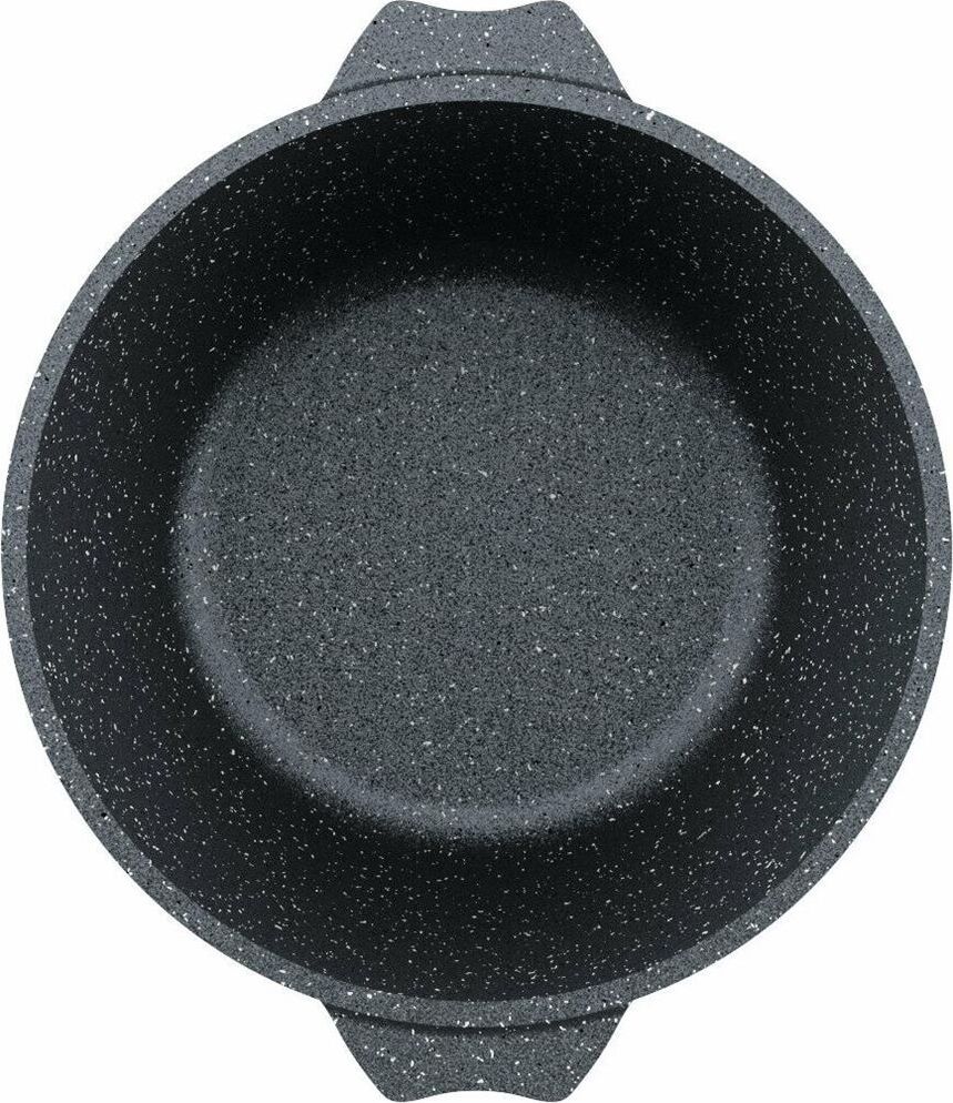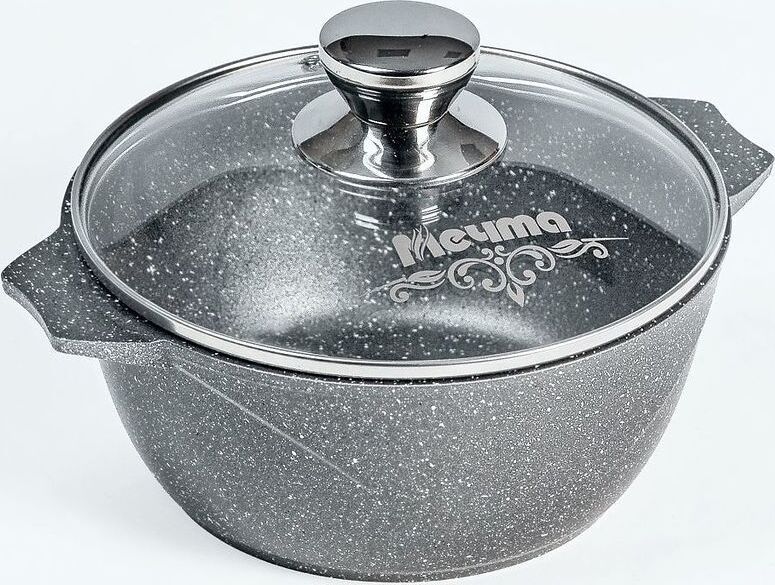 Кастрюля 4л. со стеклянной крышкой. Антипригарное покрытие Greblon на водной основе без PFOA. Серия "Гранит". Подходит для всех типов плит, кроме индукционных. Можно использовать в посудомоечной машине. Ресурс более 12 000 циклов, толщина покрытия до 55 мкр. Толщина дна 5,5-6мм., толщина стенок 3,6-4мм. Покрытие Greblon позволяет готовить с минимальным количеством масла, сохраняя вкусовые и полезные свойства продуктов. Литой толстостенный корпус не подвержен деформации, а утолщенное дно равномерно распределяет тепло по всей поверхности.