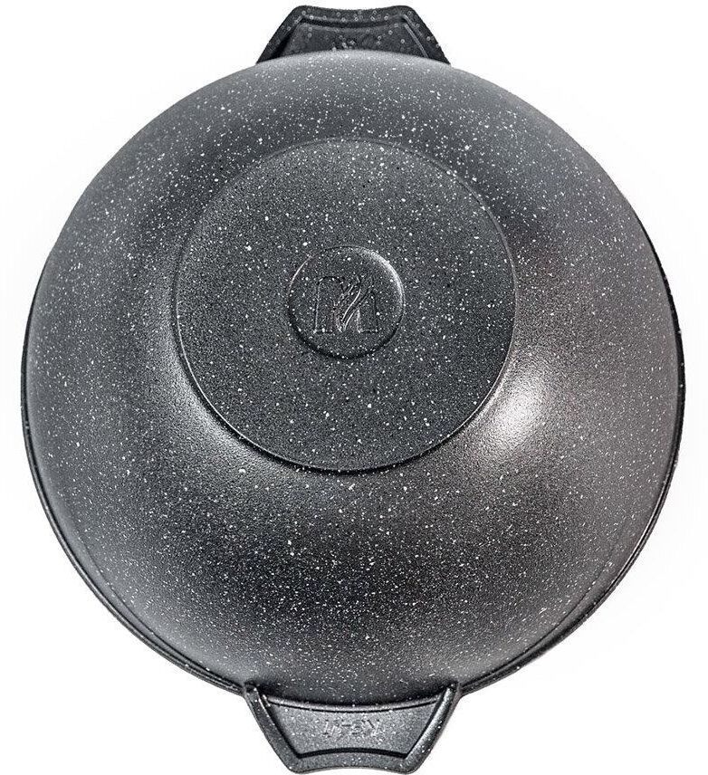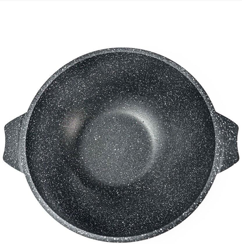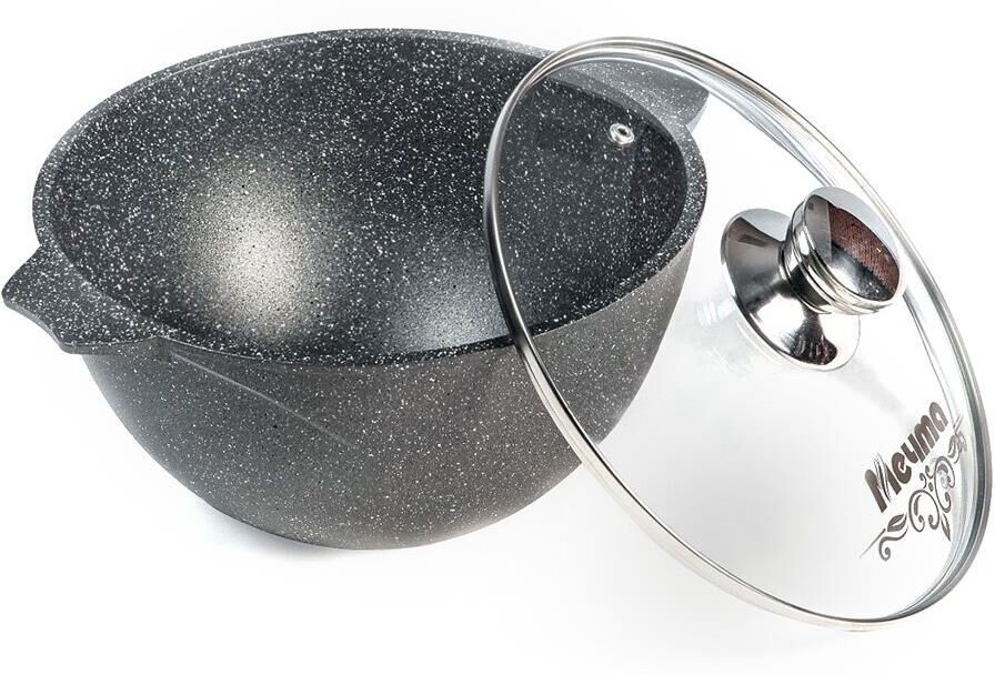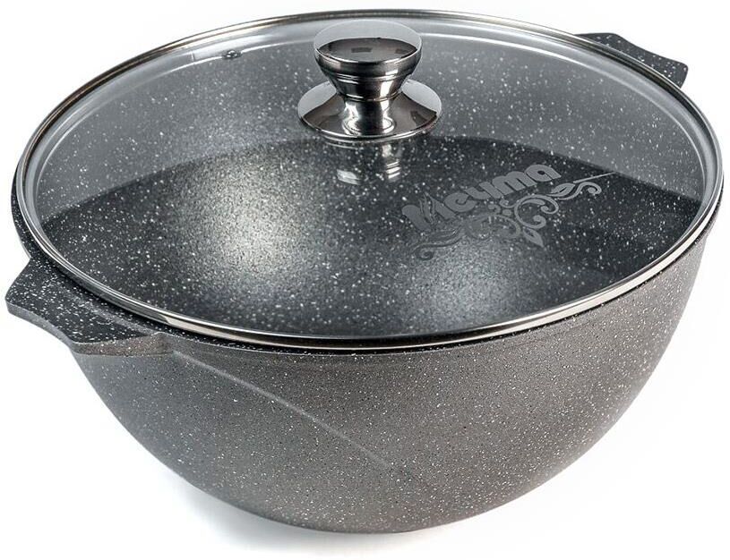 Казан для плова 7л с антипригарным покрытием и стеклянной крышкой серии "Гранит" Подходит для всех типов плит, кроме индукционных. Можно использовать в посудомоечной машине.
