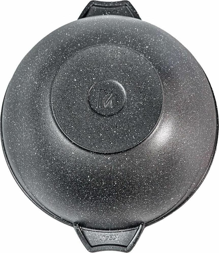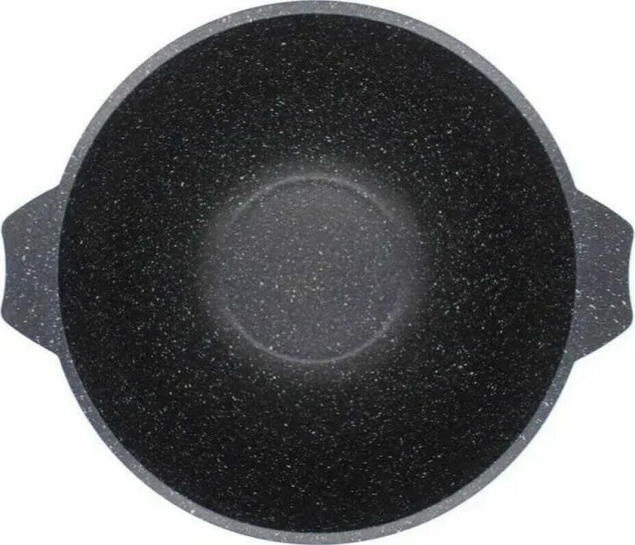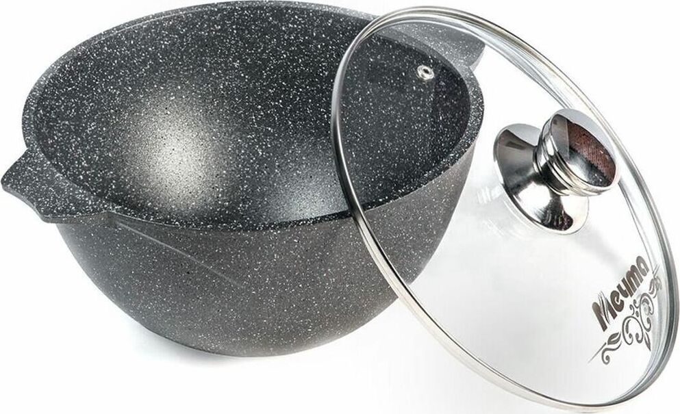Казан для плова 6л с антипригарным покрытием и стеклянной крышкой серии "Гранит black" Подходит для всех типов плит, кроме индукционных. Можно использовать в посудомоечной машине.