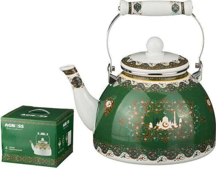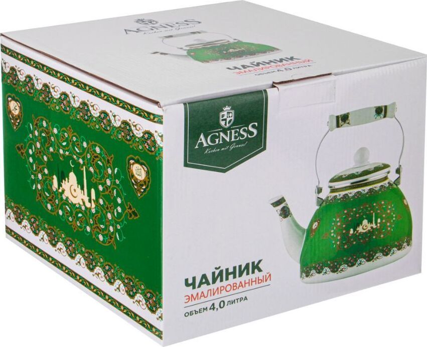 Материал: Сталь Эмалированная Объем чайника: 4 л Посудомоечная машина Эмалированная посуда не требует особого ухода и легко моется * Эмалированная посуда гигиенична - не удерживает болезнетворных микробов и бактерий * На поверхности эмалированной посуды не остается запаха пищи * Эмалированная посуда подходит для всех видов плит, включая ИНДУКЦИОННЫЕ ПЛИТЫ. * Удобная складывающаяся ручка. После того как вы поставили чайник, ручку следует опустить в исходное положение на корпус чайника * Толщина стенок 0,8мм