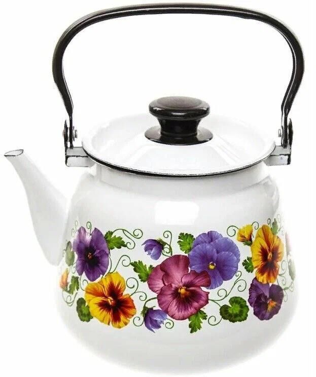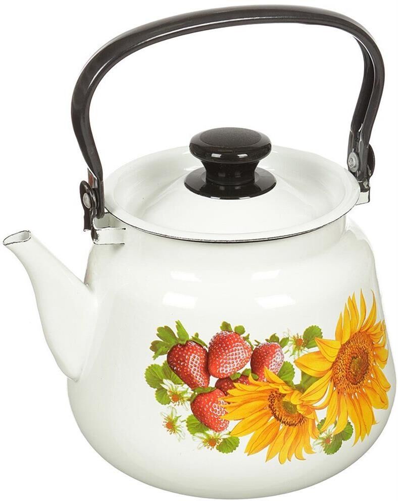 43504-132/6 Чайник эмалированный конический с металлической ручкой Высококачественное двухслойное эмалевое покрытие с деколью Деколь: в ассортиментеЦвет эмали: белый Может быть использован на всех типах кухонных плит: электрических, газовых, керамических, индукционных Подходит для мытья в посудомоечной машине Производитель: ООО «Керченский металлургический комплекс»
