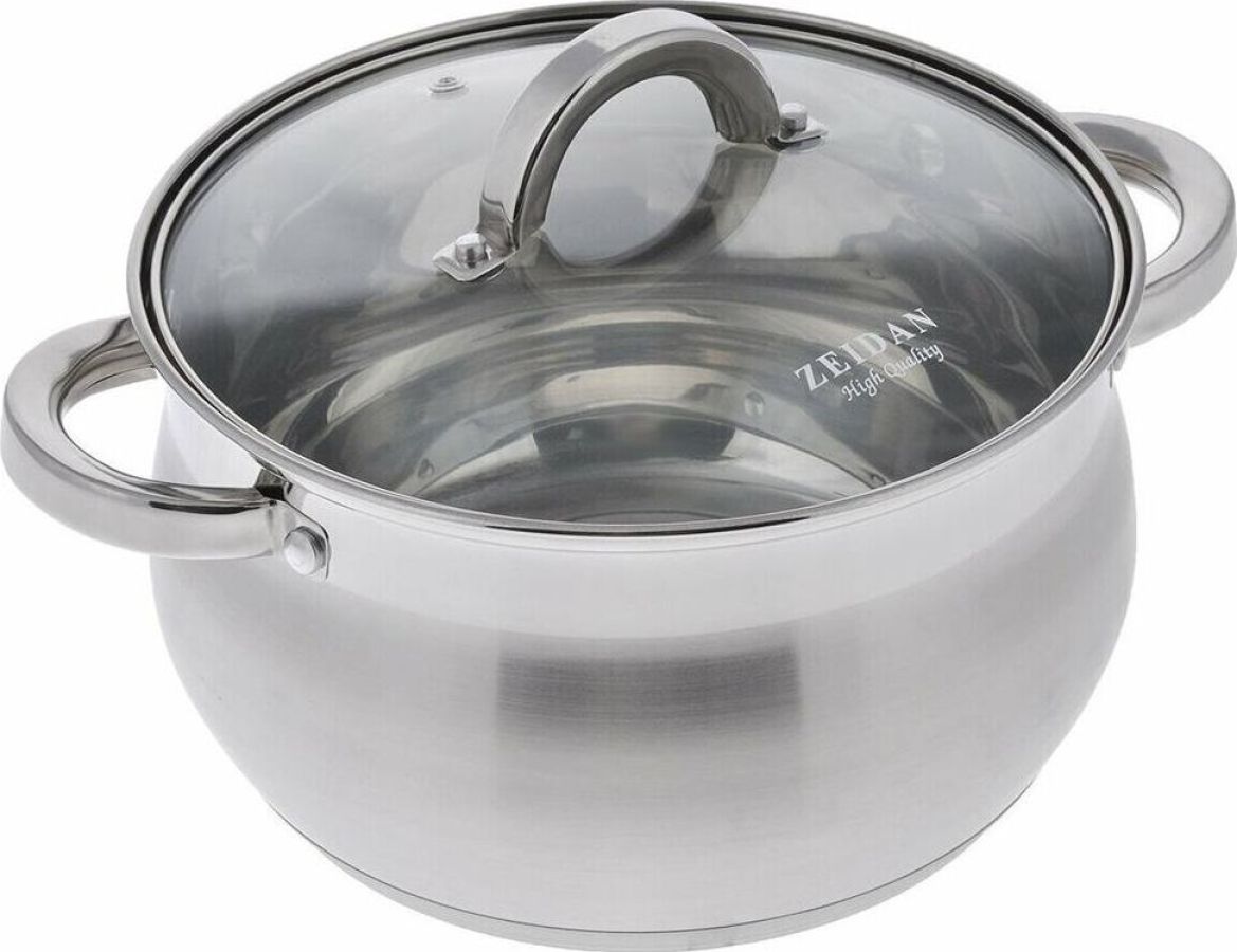 Кастрюля со стеклянной крышкой 4,0 л (д.20х12.5 см), нерж.сталь, внутренняя -зеркальная полировка, снаружи - комбинированная полировка, шкала литража, 5-ти слойное КАПСУЛИР. ДНО, ПОДАРОЧНАЯ УПАКОВКА С ПЛАСТИКОВОЙ РУЧКОЙ.