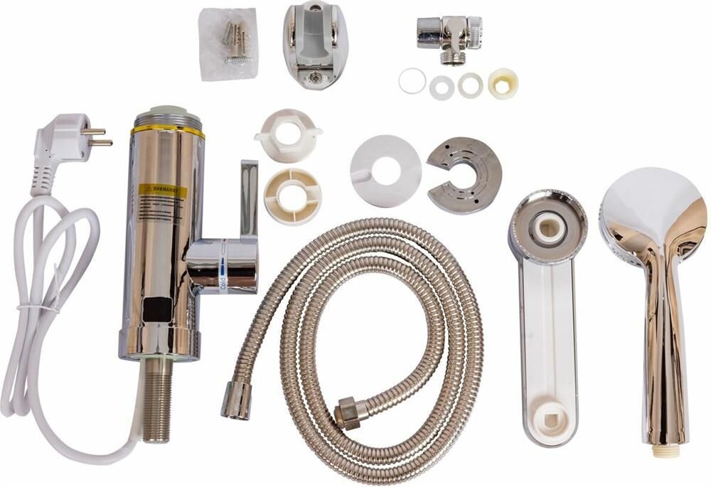 Водонагреватель проточный 2-в-1 Мощность: 3300 Вт Цифровой дисплей с индикацией температуры Защита от перегрева Регулировка температуры 30-60 ℃ Возможность работы при низком давлении воды: 0.04Mpa Максимальное давление воды: 0.5Mpa Минимальный расход воды: 1 л/мин Режим работы: Ручной хвостовик Уровень влагозащиты: IPX4 Термовыключатель на 110°C Материал: ABS Цвет: серебристый Размер соединения: G1/2"" (внешняя резьба) Длина кабеля питания: 1,2 метра Напряжение: 220В/Номинальный ток: 13,6 А