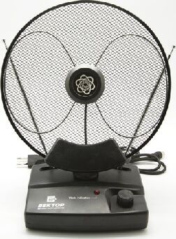 Антенна комнатная, диапазоны принимаемых частот: FM 88-108 МГц VHF 40-230 МГц; UHF 470-862 МГц; коэффициент усиления: 0-36 дБ (с регулировкой).