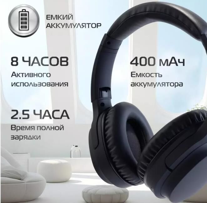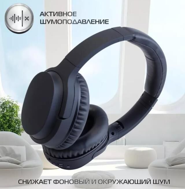 Накладные Bluetooth наушники с шумоподавлением (ANC). Версия Bluetooth: 5.1; Эффективный радиус действия: до 10 м.; Частотный диапазон: 20 Гц - 20 кГц; Чуствительность: 110 дБ; Сопротивление: 32 Ом.; Встроенный микрофон; Активная система шумоподавления(ANC); Складная конструкция; Разъём для подключения: microUSB; Вызов голосового помощника; Переключение треков; Регулировка громкости.