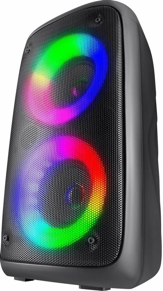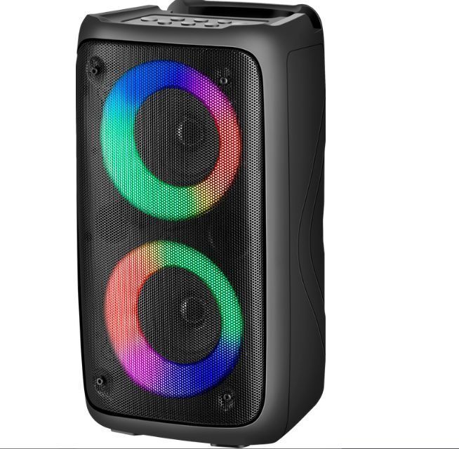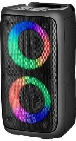 Акустическая Bluetooth система. Суммарная выходная мощность (RMS) 20 Вт Звуковая схема 2.0, моно Размер динамиков 2 x 3 " Акустическое оформление фазоинверторного типа Расположение порта фазоинвертора фронт True Wireless Stereo (TWS) есть Диапазон частот 150—18000 Гц Соотношение сигнал/шум 85 дБ Время работы от аккумулятора 2 час Время зарядки аккумулятора 5 час Интерфейс AUX-аудиовход Подсветка светодиодная Световые эффекты есть Интерфейс беспроводной связи Bluetooth 5.0 Дальность действия 10 м Питание от USB, 5 В , Li-Ion аккумулятор Емкость аккумулятора 2400 мА·ч Встроенный FM-приемник есть Радиочастотный диапазон МГц Поддержка карт памяти Micro-SD есть Максимальный поддерживаемый объем карты памяти MicroSD 32 ГБ Поддержка USB-флеш-накопителя есть Максимальный поддерживаемый объем памяти USB-флеш-накопителя 32 ГБ Форматы воспроизведения аудио MP3 Вход для микрофона 3,5-мм мини-джек Количество микрофонных входов Один Материал корпуса пластик Высота 292 мм Ширина 160 мм Глубина 150