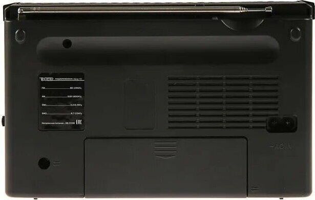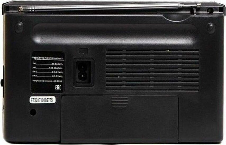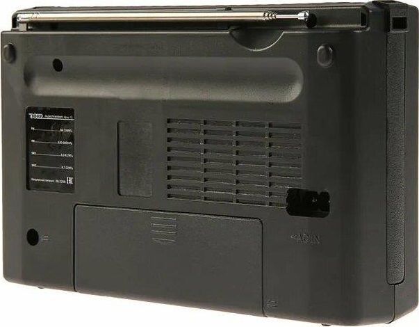 Тюнер аналоговый, диапазоны/частоты FM 88-108МГц, AM 530-1600КГц, SW1 3,2-8,2МГц, SW2 8,7-22,0МГц, 1 динамик, мощность динамика Ф76mm/4Ом/3W, питание 220В, батарейки R20*2шт (не в компл), размер 210х73х145мм, телескопическая антенна, разъем под наушники, ручка для переноски.