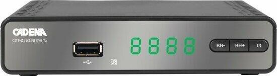 Приемник цифровой эфирный CADENA CDT-2351SB с LED-дисплеем, со встроенным тюнером DVB-T2, корпус ABS. Предназначен для приема открытых каналов эфирного вещания высокой четкости. В приемник встроен USB мультимедиа интерфейс, с помощью которого вы можете проигрывать/прослушивать музыку, фото, видеофайлы. Имеет полный набор стандартных операций: запись телепередач и запись события по расписанию на USB носитель; отложенный просмотр; телетекст; телегид; родительский контроль.