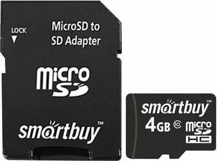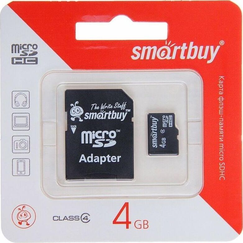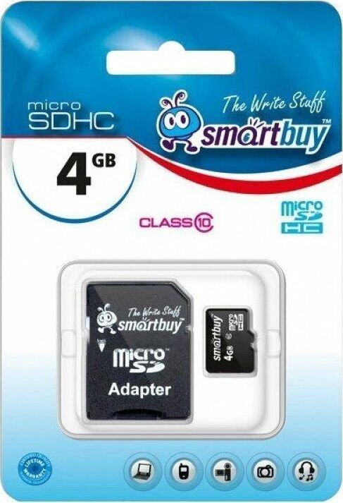 Карта памяти, объем - 4GB, скорость передачи данных: не менее 10 МБ/с, адаптер в комплекте, универсальный носитель информации на основе технологии флэш-памяти для самых различных целей.
