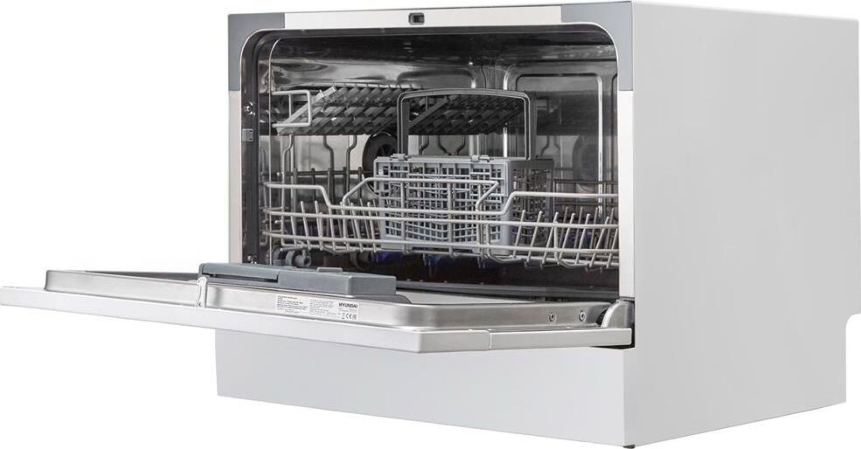 Компактная настольная ПММ., ВхШхГ: 438х550х550 мм, 6 компл., Электронное управление, LED индикация, 5 программ, Активная сушка, Отложенный старт: до 8 ч., Использование средств "All in one", , Ур.шума 49 дБ, класс энергопотребления А+, цвет - белый, Гарантия 2 года