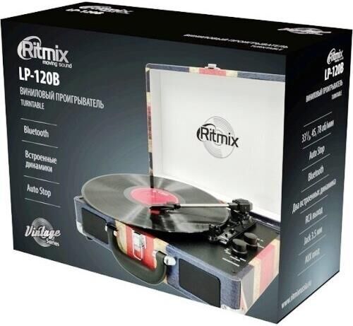 Виниловый проигрыватель, Bluetooth 4.1, номинальная потребляемая мощность 6 Вт, скорости воспроизведения пластинок33?, 45, 78 об/мин,тонарм - поворотный прямой, Auto Stop, размеры353 х 257 х 102 мм.