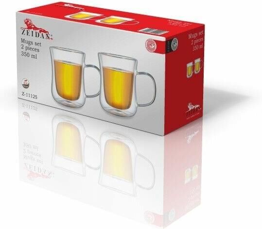 Набор кружек с двойными стенками ZEIDAN Z-11125 350 мл, Набор кружек с двойными стенками - 350 мл, корпус из высококачественного термостойкого боросиликатного стекла, подарочная упаковка.