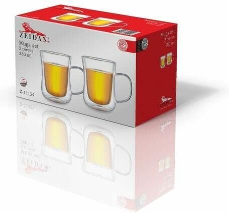 Набор кружек с двойными стенками ZEIDAN Z-11124 280 мл, Набор кружек с двойными стенками - 280 мл, корпус из высококачественного термостойкого боросиликатного стекла, подарочная упаковка.