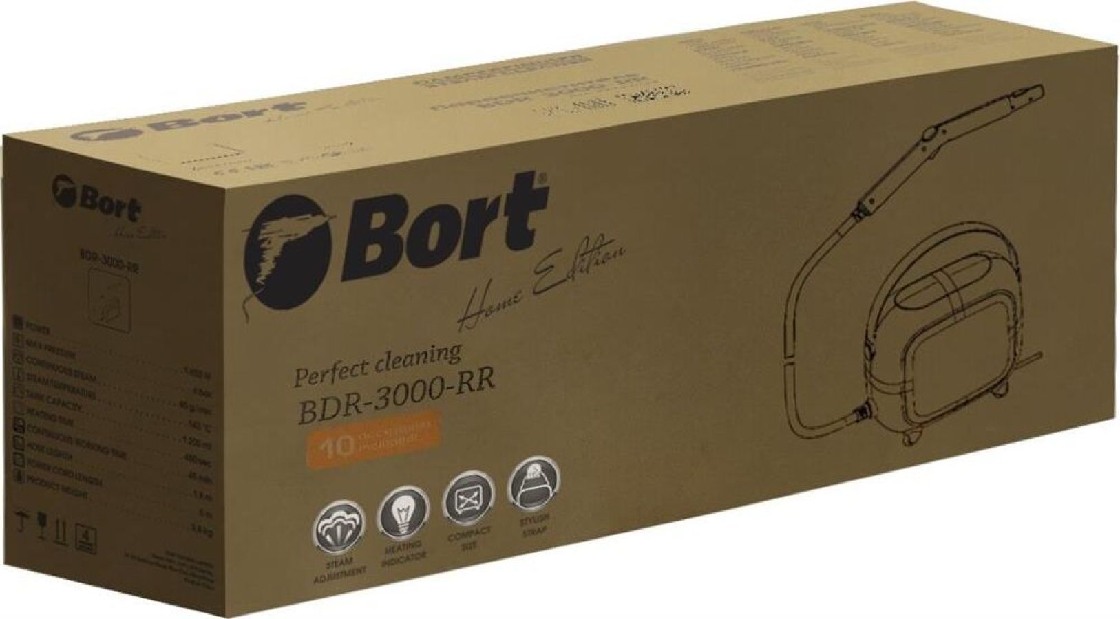 Мощность, Вт1 650. Напряжение, В220.Макс давление, бар 4.Частота тока, Гц50.Постоянная подача пара, г/мин 45.Вес изделия, кг3,8.Температура пара, °С143.Вес брутто, кг5,9.Емкость бачка, мл1,5.Габариты упаковки, см69 x 25 x 33. Время нагревания, с480.Время непрерывной работы, мин 45.Регулировка мощности пара Да. Длина шланга, м1,8. Длина шнура питания, м5.