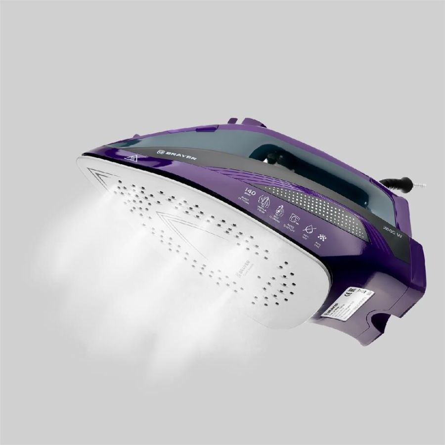 Максимальная мощность 2600 Вт. Керамическое покрытие подошвы, обеспечивающее легкое скольжение по ткани. Технолгия OneTemp: одна температура для всех типов тканей. Постоянная подача пара: 25 г/мин. Максимальный паровой удар: 140г/мин. Вертикальное отпаривание. Автоматическое отключение. Встроенная система защиты от накипи. Функция "Антикапля". Функция самоотчистки. Функция разбрызгивания. Резервуар для воды: 360 мл. Длина шнура: 1,9 м. Электропитание: 230 В., 50-60 Гц.