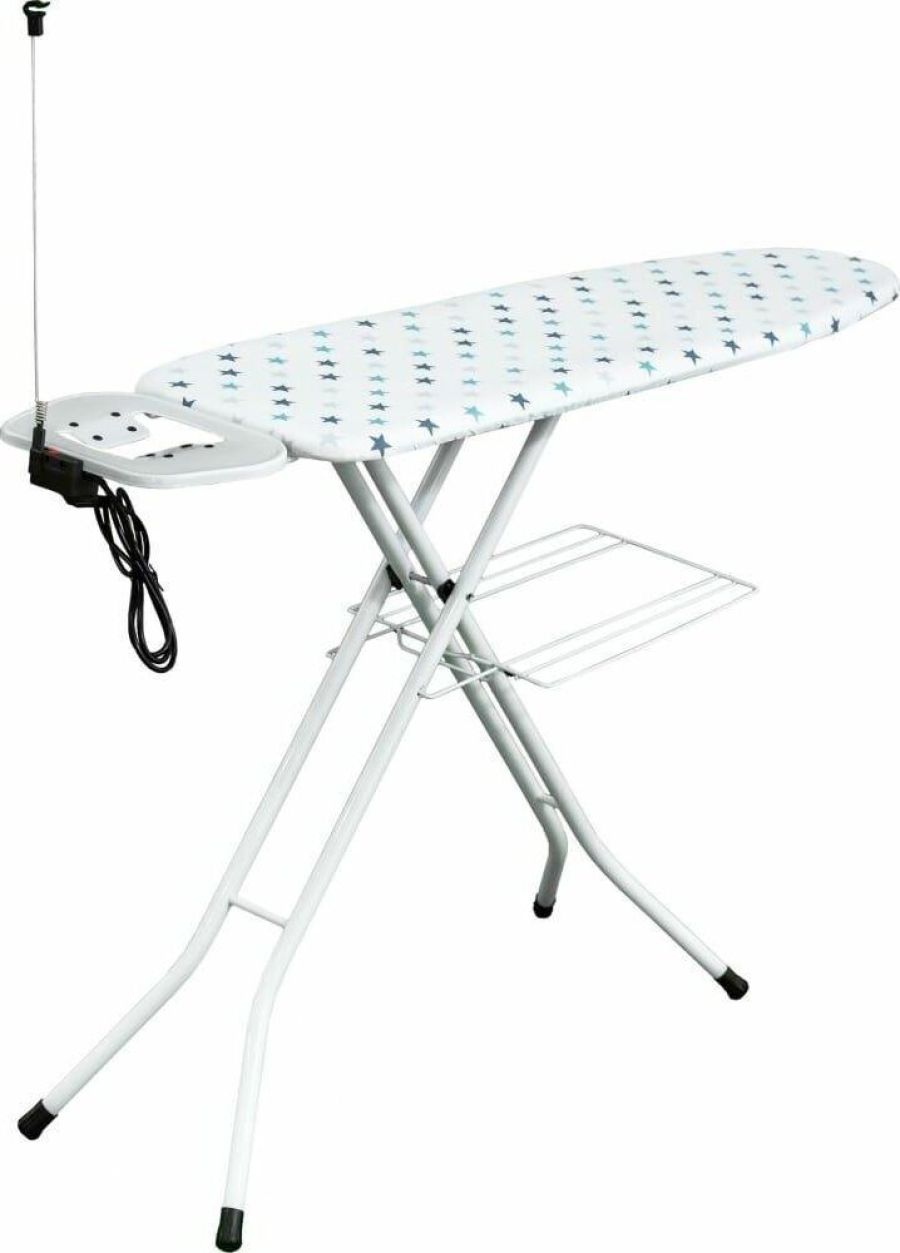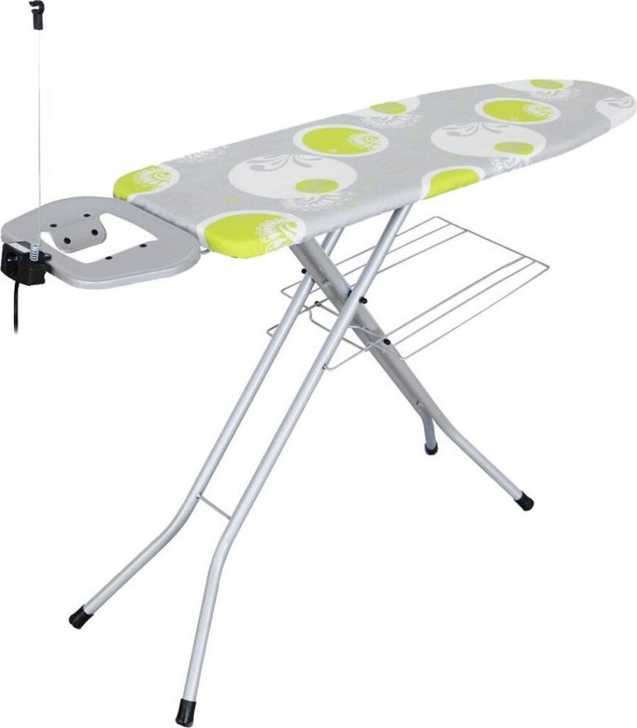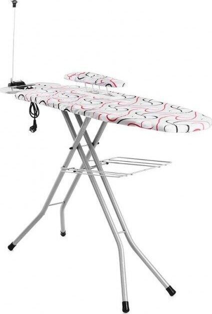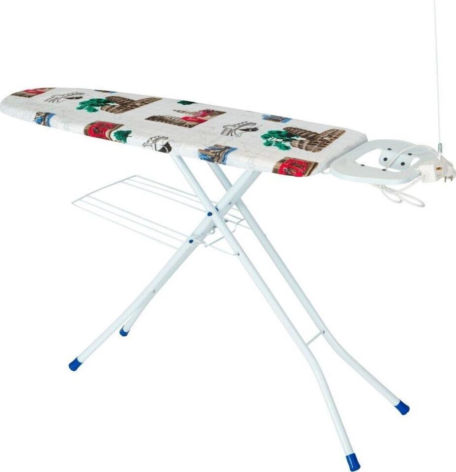 Комплектация: кронштейн для провода, встроенная розетка для утюга, гладильный рукав, подставка для утюга, полка для белья, удлинитель