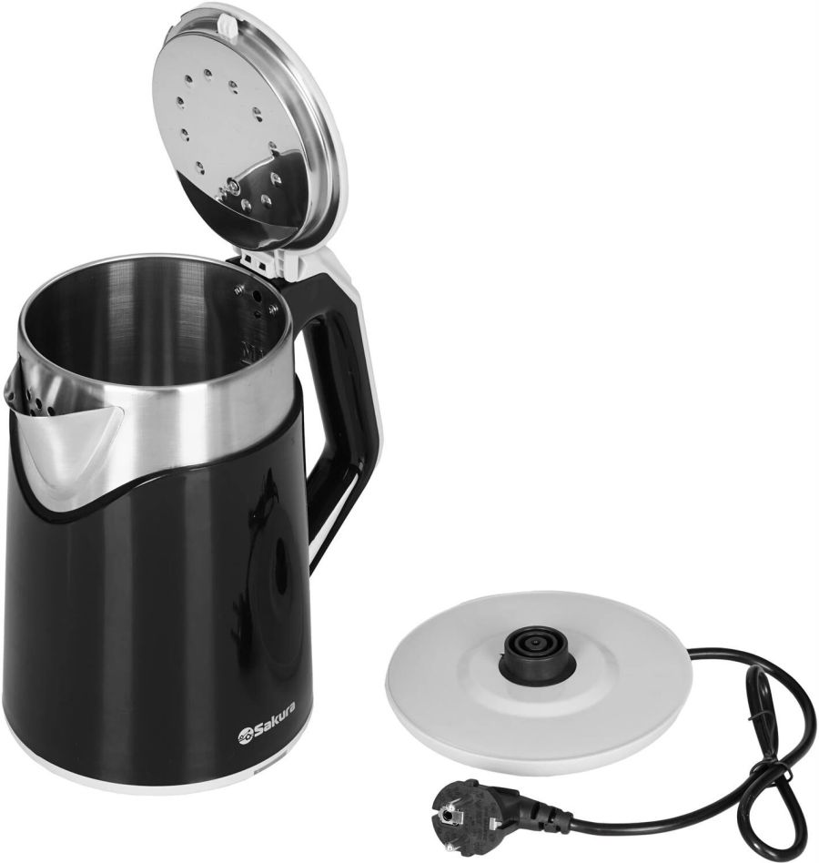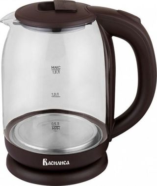 1.8 л, 1500-1800 Вт, дисковый нагреватель, двухслойный корпус, эффект термоса (быстрее нагревается и дольше удерживает тепло), отключение при закипании/без воды, внутр.индикатор уровня воды, световой индикатор работы, вращение на 360°