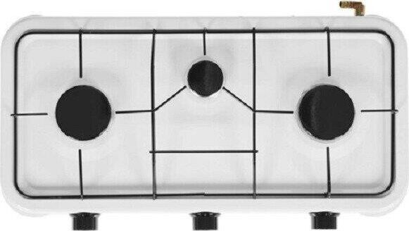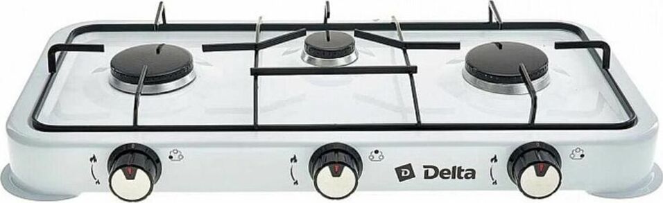 Номинальная тепловая мощность 2,2х2+1,0кВт. Номинальный расход газа 393 г/ч. Номинальное давление используемого газа 3,0 кПа. Вид сжиженного газа пропан/бутан. Количество конфорок 3 конфорки. Тип настольная. Тип розжига ручной. ВНИМАНИЕ Запрещено подключать баллон с газом напрямую к плите без регулятора давления газа (редуктора) Газовый шланг, регулятор давления газа (редуктор) и баллон в комплект поставки не входят.