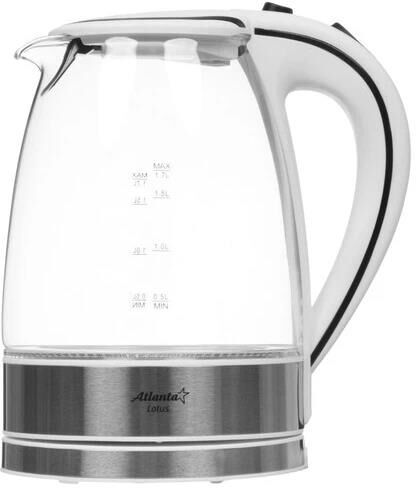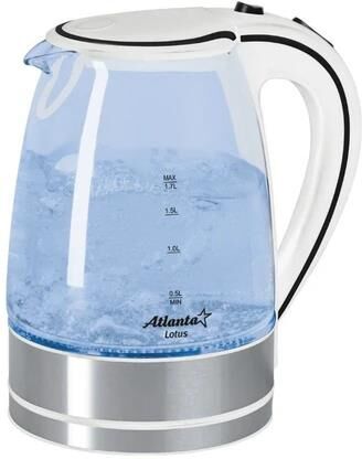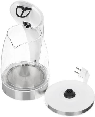 Объем 1,7 литра Корпус из термостойкого стекла Иллюминация Специальная ручка от скольжения Поворот на подставке на 360° Быстрое закипание Фильтр от накипи Закрытый нагревательный элемент Автоматическое отключение Защита от перегрева без воды Электрошнур в цокольной подставке Номинальная мощность 2000 Вт 230 B ~ 50 Гц