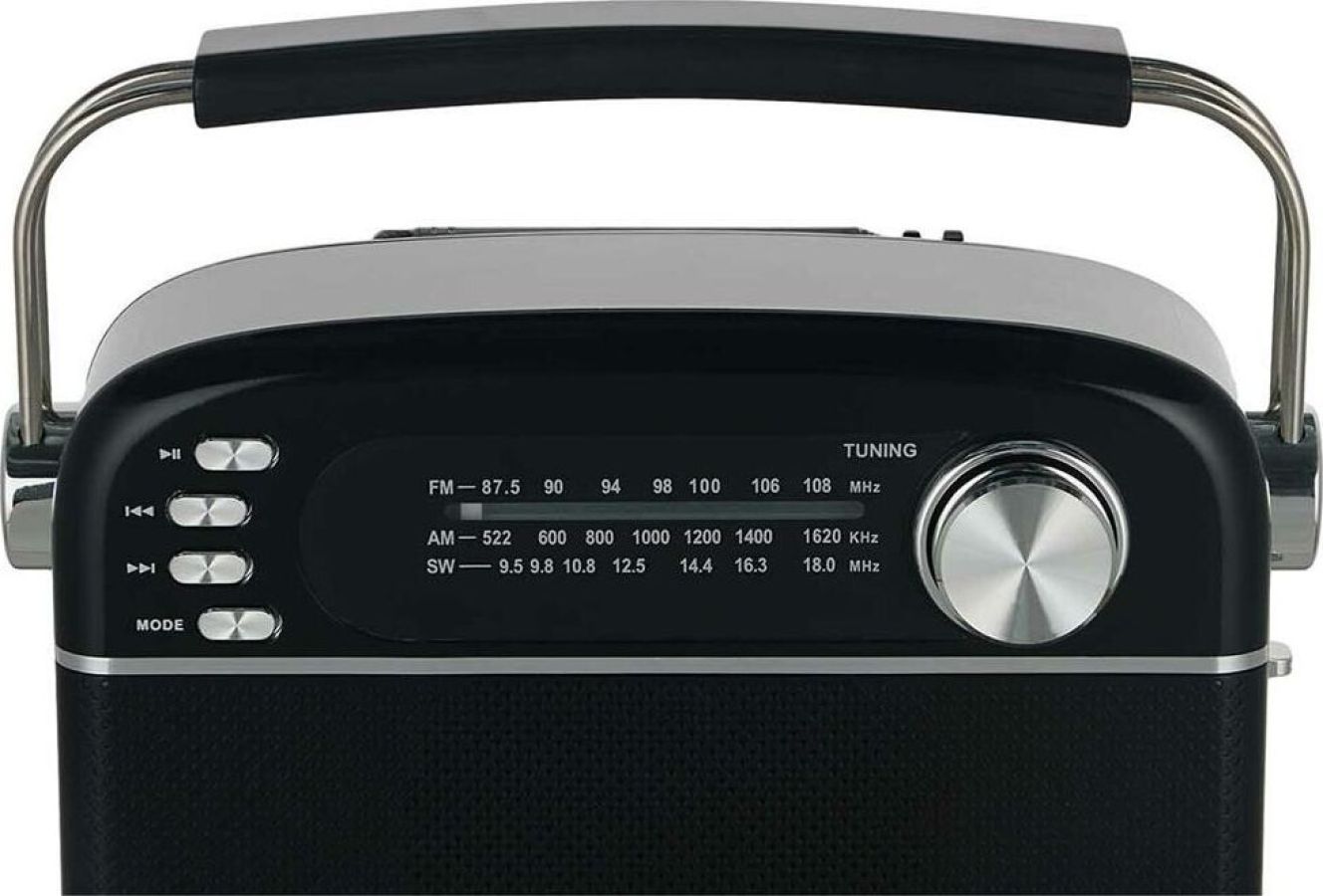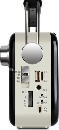 Портативная беспроводная акустическая система ,Bluetooth, выходная мощность (RMS) - 4Вт, частотный диапазон, Гц 100 – 12 000, размеры динамиков, мм - O 90, диапазон частот тюнера, МГц - 87.5 – 108, воспроизведение музыки с носителей памяти USB, microSD, источник питания - литий-ионный aккумулятор: 1200 мA · час, USB: DC 5 V, размеры изделия (мм) - 230х147х110.