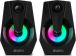 Акустическая система, Выходная мощность (RMS), Вт 6 (2 х3) Частотный диапазон, Гц -100 – 20 000 Размеры динамиков, мм - O 64 Напряжение питания - USB / DC 5V Динамическая RGB подсветка, Регулировка уровня громкости и выключение питания на фронтал, Питание через порт USB, Размеры изделия (Ш хВ хГ), мм - 93х141х101.