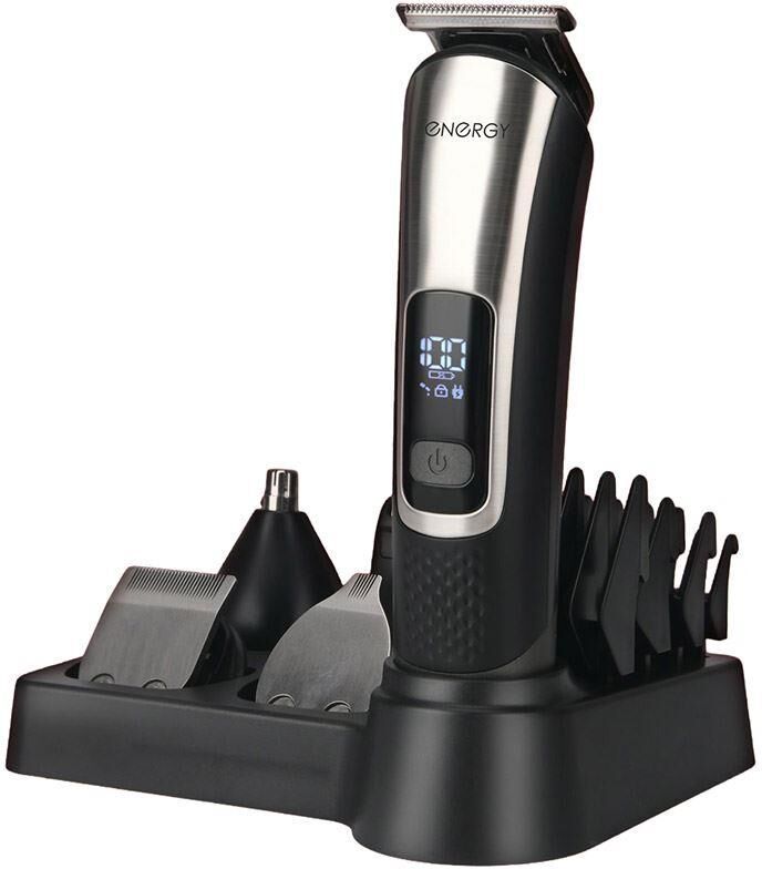 Мощность: 5 Вт LED дисплей Бритва, триммер, машинка для стрижки 2 насадки для волос: Т-образная насадка, U-образная насадка 5 насадок-гребней: Т-образные 3 мм/6 мм/9 мм/12 мм; U-образная телескопическая 3 мм-6 мм Насадка-триммер для носа и ушей Насадка-бритва Лезвие из нержавеющей стали Встроенный аккумулятор: Li-ion 18650, 3,7 В, 1300 мАч Время зарядки: 180 мин Время работы: 300 мин Зарядка от USB Вход: 5 В, 1 А Выход: 3.7 В В комплекте: Щеточка для чистки лезвий Масло для смазки лезвий Подставка USB кабель