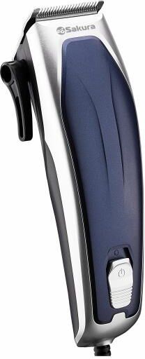 Стальные лезвия, работа от сети 220-240 В, мощный мотор (7 Вт), 3-ступенчатая регулировка лезвия с помощью рычажка, кабель питания 1,8 м, в комплекте: 4 насадки (3, 6, 9 и 12 мм), расческа, ножницы, масло, кисточка для очистки. Цвет: синий/ серебро