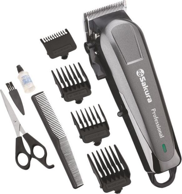 Профессиональная серия приборов для стрижки. В комплекте 4 насадки-гребня на 3/6/9/12 мм, лезвие из углеродистой стали, Li-Ion аккумулятор 2000 mAh, зарядка от USB за 2,5-3 ч, непрерывная работа до 3,5-4 ч, возможность использования во время зарядки, индикация низкого уровня заряда и полной зарядки. В комплект входит: защитная крышка, 4 гребня, расческа, ножницы, щеточка для очистки, масло для смазки, USB кабель.