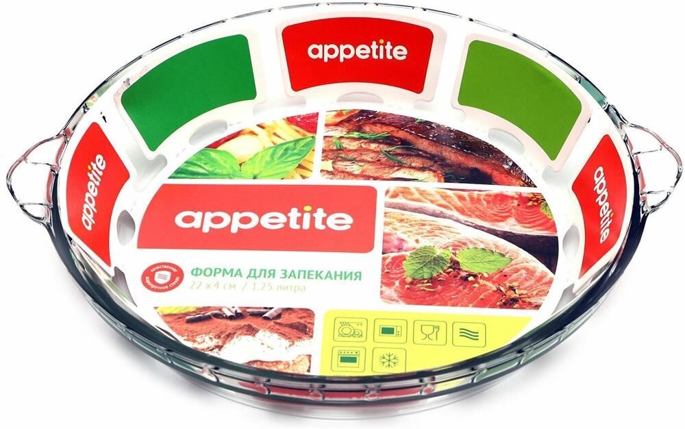 Форма для запекания Appetite стеклянная 22х4 см, 1,25 л, незаменима на природе для приготовления блюд из мяса и овощей.