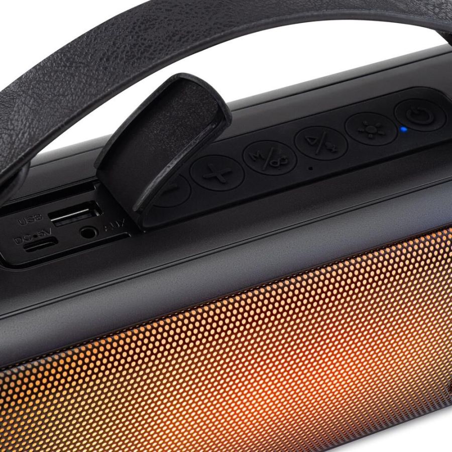 Звук Стерео; Суммарная мощность 16 Вт; Питание Автономное, от электросети; Беспроводная связь Bluetooth; Разъемы USB Type-A (для флэшки), вход аудио; Разъем для зарядки USB Type-C; Время работы 7 ч; Емкость аккумулятора 1 500 мА·ч; Особенности F M-радио, влагозащищенный корпус, поддержка microSD, световые эффекты