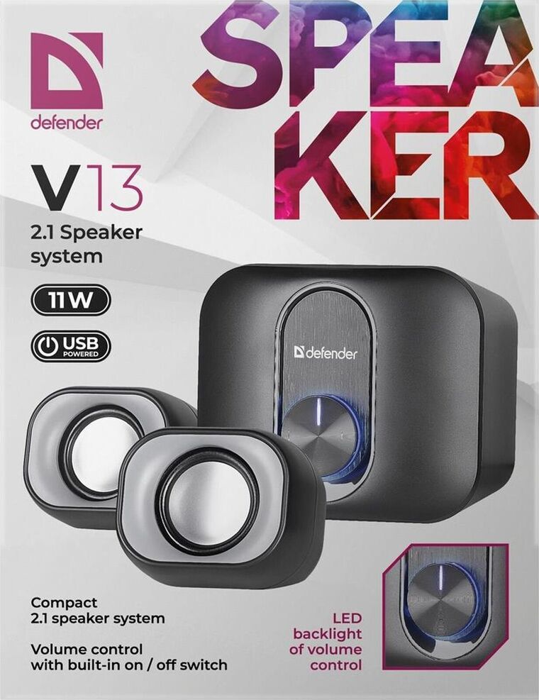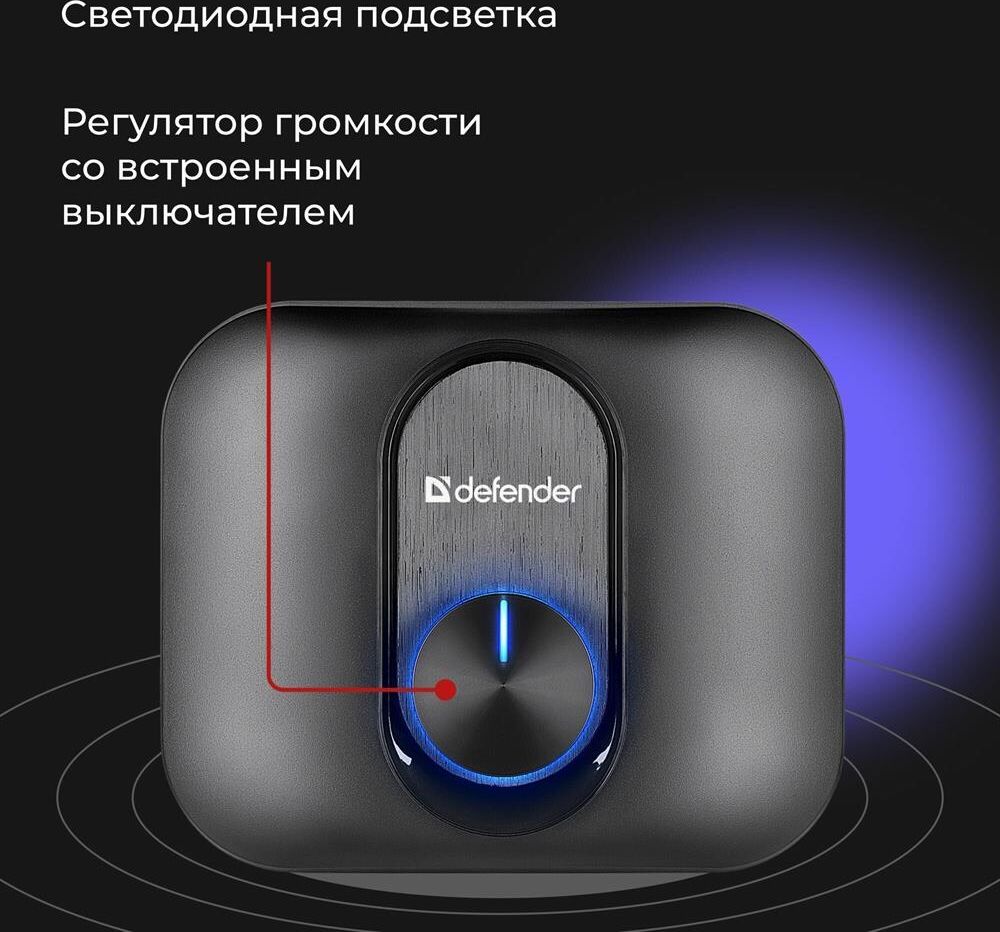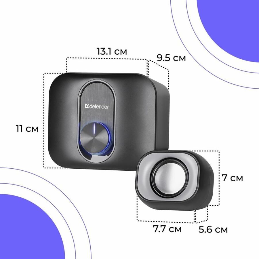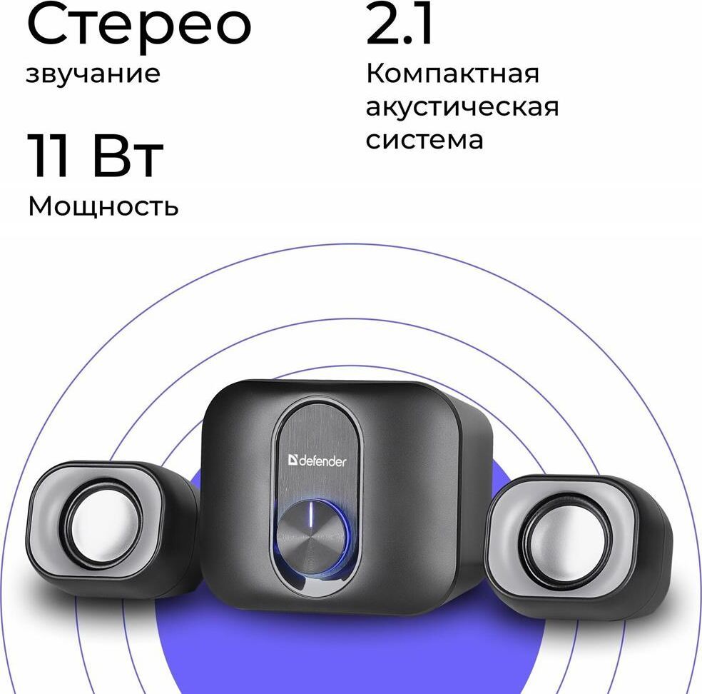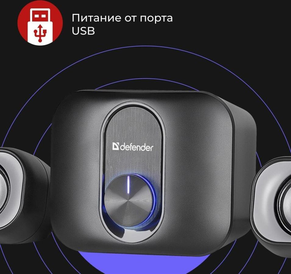 Компактная акустическая система 2.1 Светодиодная подсветка регулятора громкости Регулятор громкости звука со встроенным выключателем Питание от порта USB