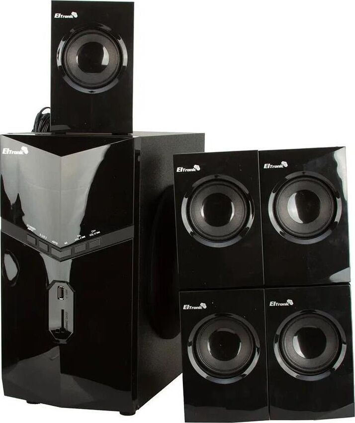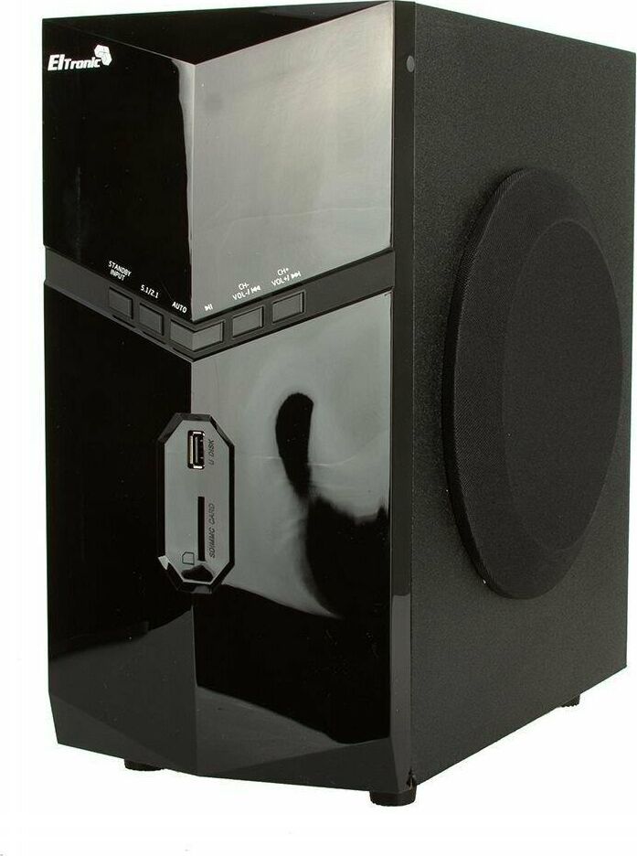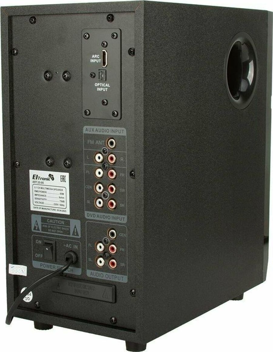 "Акустическая система 5.1 ELTRONIC HOME SOUND Режимы воспроизведения: - Bluetooth - Внешний накопитель - Aux, HDMI ARC, Optical - FM Мощность: - RMS 85 Ватт - PMPO 850 Ватт Питание: - Сеть 220V Разъемы: - USB - SD - Auх тюлпан - ARC in - Optical in Комплектация: - Комплект соединительных проводов - Пульт Д/У - Инструкция на Русском языке Размер: Ширина - 38 см Высота - 32 см Глубина - 33 см Дополнительно: Встроенный MP3 плеер Управление плеером прямо на колонке Led дисплей"