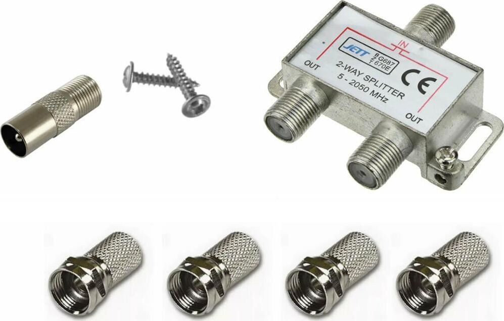Используется для разделения телевизионного сигнала на несколько частей. Тип:сплиттер (разветвитель). Количество выходов:2шт; Частота сигнала:5-2050MHz; Материал:металл.