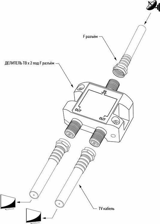 Используется для разделения телевизионного сигнала на несколько частей. Количество выходов:2шт; Частота сигнала: 5-2500MHz; Материал:металл.