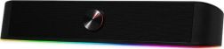 Саундбар, суммарная выходная мощность (RMS) 6 Вт, мощность сателлитов (RMS) 2x3 Вт, диапазон частот 150–20000 Гц, соотношение сигнал/шум ?65 дБ, длина кабеля 1 м, тип интерфейса 3,5-мм джек, питание от USB, 5 В, размер 400 x 75 x 67 мм.