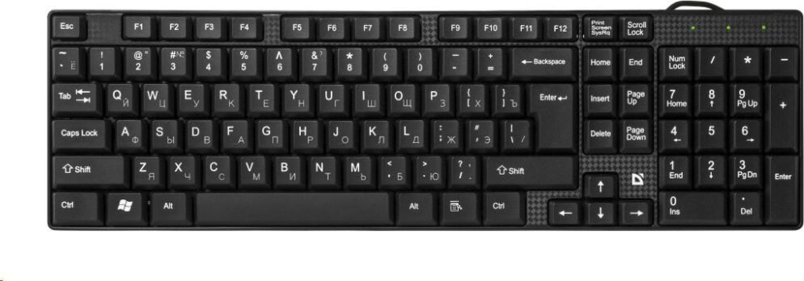 Интерфейс подключения: USB, Длина кабеля: 1.25(±5%) м, Кол-во клавиш: 102 шт, Системные требования для ПК: Windows 2000/XP/Vista/7/8/10, Mac OS X10, Тип клавиатуры: Мембранная.